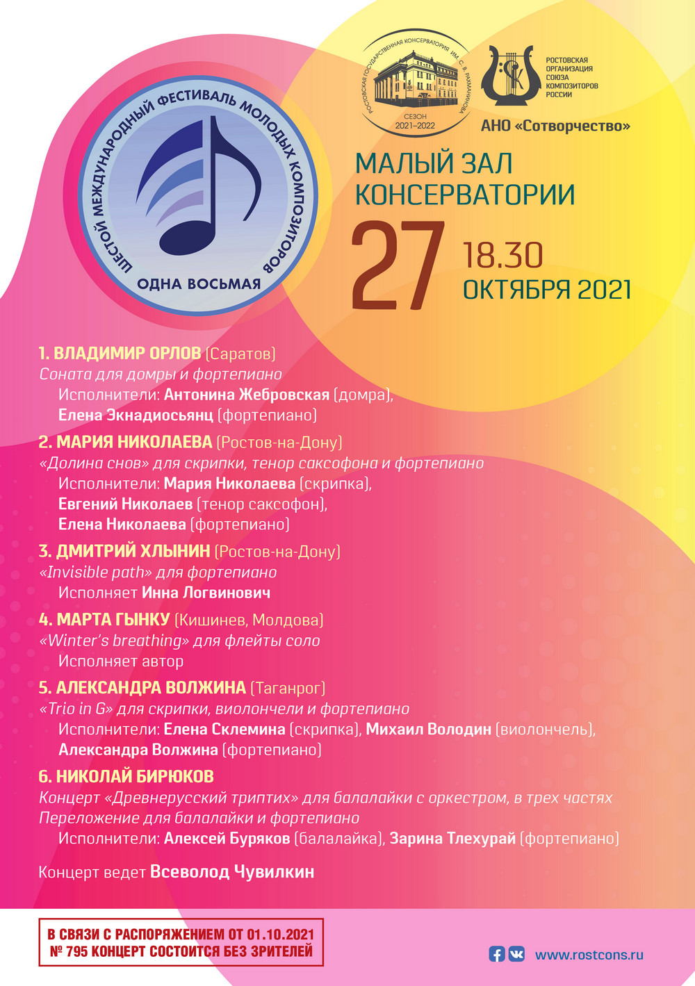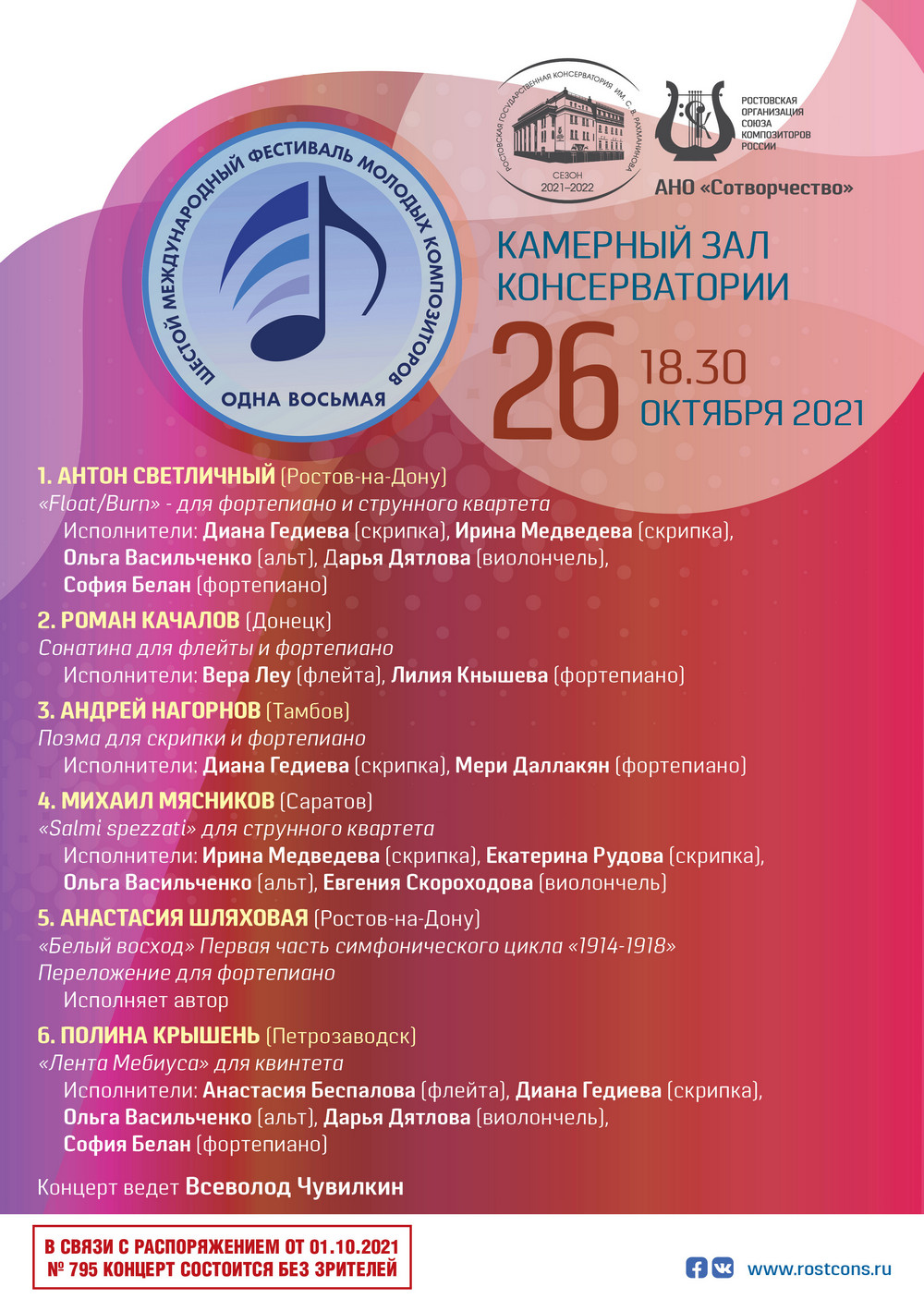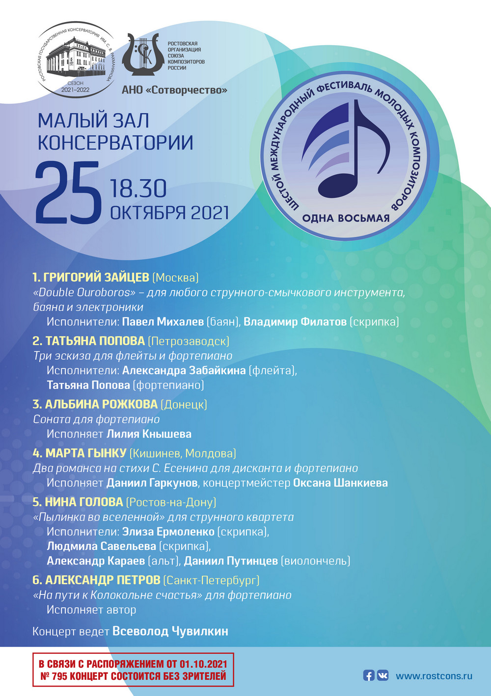 25-27 октября в Ростовской государственной консерватории имени С.В. Рахманинова прошёл Шестой международный фестиваль молодых композиторов «Одна восьмая»