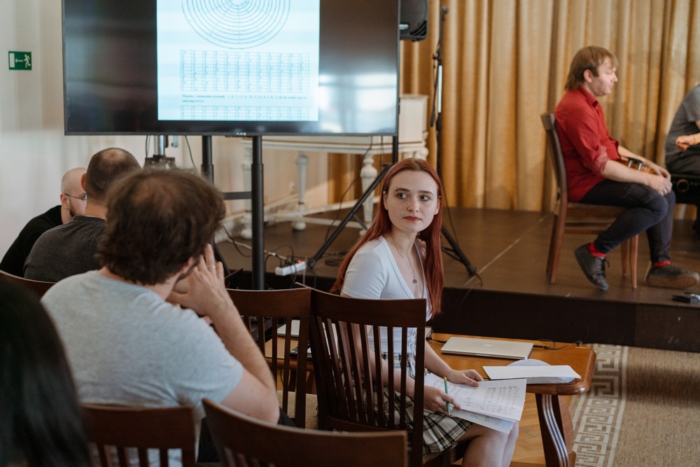 На ридинг-сессиях с МАСМом услышали "Грув наигрышей в танце" Дениса Щевелёва, "Немножко трепетно" Ильи Вязова, а еще узнали, что такое "Двунадесятые" Карины Нестерук и танцы Ктулху от Алины Мухаметрахимовой. Индивидуальные с композиторами-кураторами Алексеем Наджаровым и Марком Булошниковым завершили этот насыщенный день.