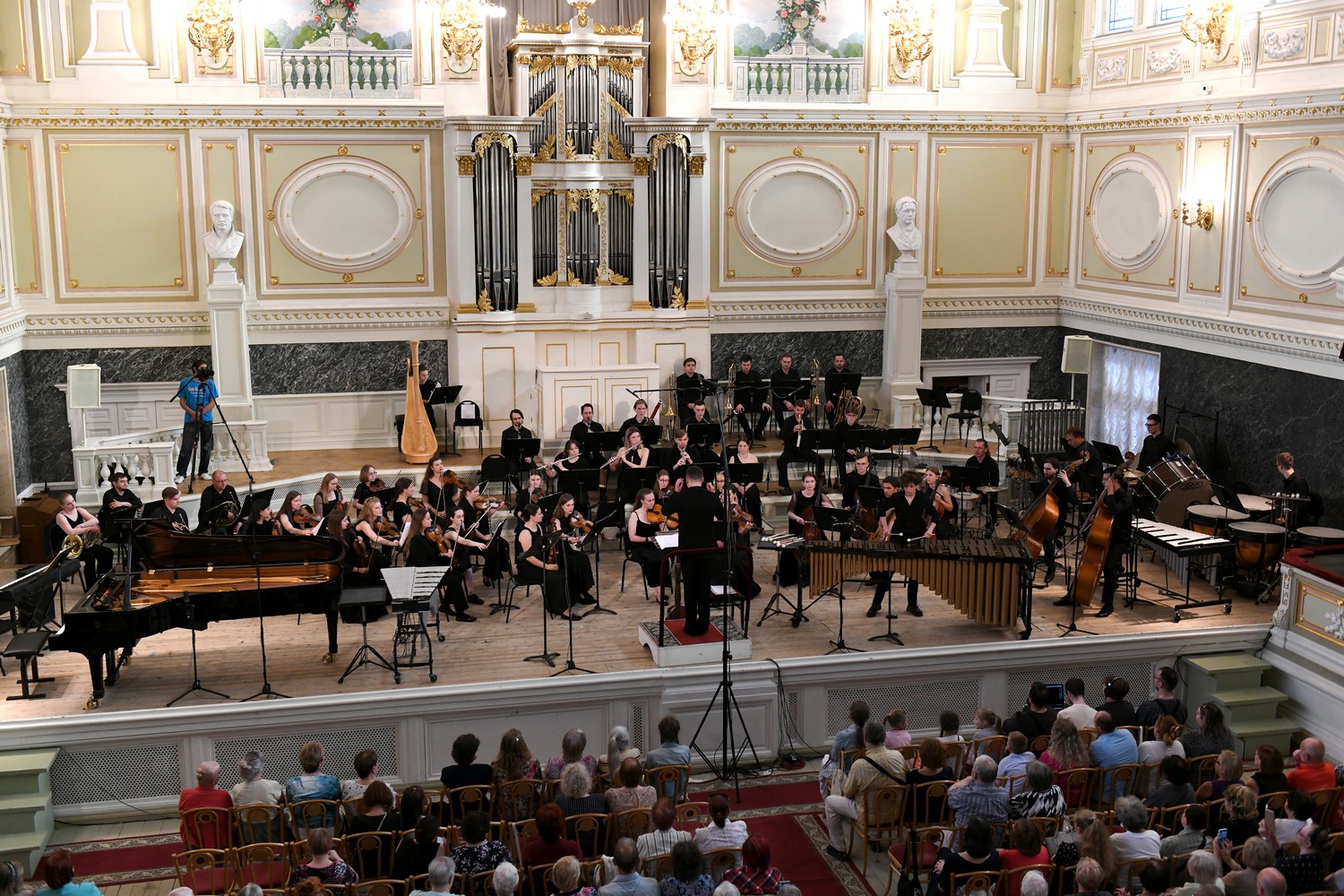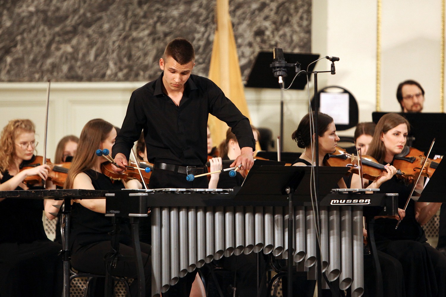 Столь разносторонние сюжеты в произведениях концерта оказались обрамлены двумя работами, программа которых не связана с конкретными образами. Одночастный концерт для маримбы с оркестром Артема Петайкина, открывший мероприятие, стал многоликим эпиграфом к гала-концерту. Грозные фанфары, удары тарелок во вступлении развеиваются звонкой темой маримбы – стремительное, даже скерцозное включение увлечённого и страстного молодого солиста (Андрей Тарануха) сменяется неторопливым оркестровым танцем, с явно испанскими веяниями. Продолжительная виртуозная каденция солиста, похожая на полёт лёгкого ветра, обрамлена эпическими разделами, с большими регистровыми разрывами и ощущением свободы, широты пространства.
