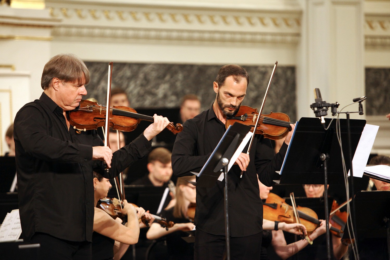 Завершившее вечер Express-Concerto для двух скрипок и симфонического оркестра Эдуарда Кипрского – это монументальное оркестровое полотно, в котором, несмотря на одночастность, можно услышать тяготение к симфоническому циклу с нервной полифонизированной первой частью, лирическим центром, горделиво-танцевальной третьей частью, токкатным финалом и кодой. Солистами выступили блистательные музыканты Мариинского театра – Александр Широков и Андрей Покатов.