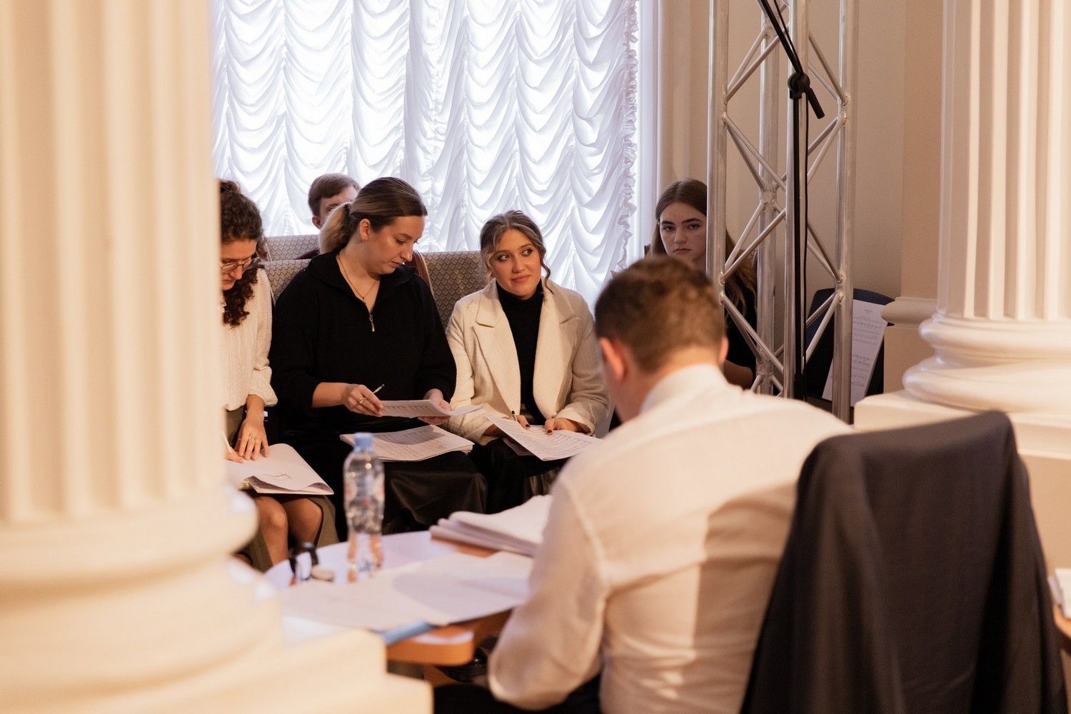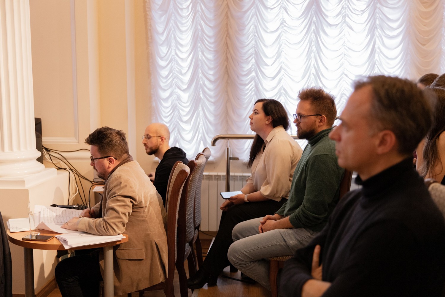 Александр Рыжинский рассказал, что хор готовил партитуры в течение недели. Главный хормейстер Денис Морозов провел две вечерние репетиции по два и три часа соответственно – это привычный темп работы. Со своим руководителем хор встретился уже на самих «читках» – коллектив был готов представить свою версию присланных партитур.