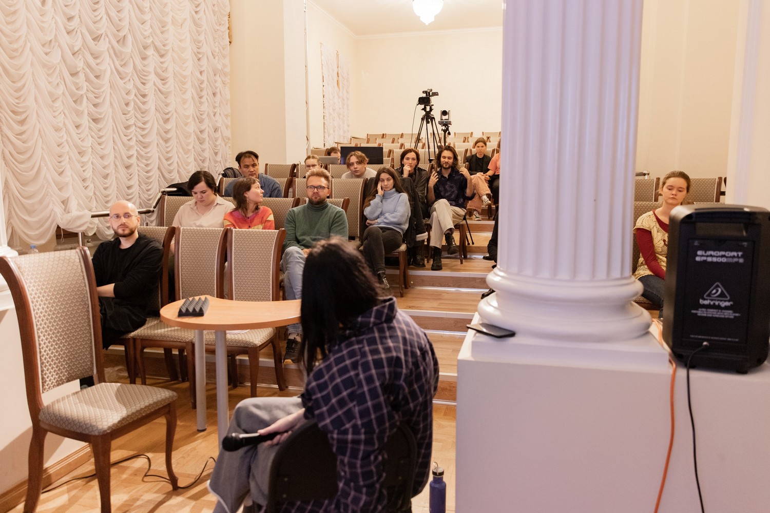 Стремление дать композиторам широкий угол обзора на хоровую музыку прослеживалось и в выборе спикеров для лекций и воркшопов. Кузьма Бодров, Алексей Ретинский и Алексей Сысоев рассказывали о своем опыте работы с хором в разных жанрах. Ольга Бочихина устроила любопытную практику: участники создавали партитуру из текста Сэмюэла Беккета с помощью собственного голоса. В последний день проекта вместе с журналистом, автором подкаста «Фиолетовый снег» Ириной Севастьяновой Бочихина рассказала о пределах контроля голоса в музыке в Артемьев-центре. Было что обсудить и исполнителям: Александр Рыжинский прочитал лекцию об особенностях тембрики и фактуры хоровой композиции ХХ века, а лидер ансамбля nCaged Aрина Зверева поделилась своей болью о проблемах в нотации в современной вокальной музыке. В процессе общей работы, диалога участники и спикеры затрагивали непростые темы. Так, Алексей Ретинский рассуждал, как важно для композитора сокращать и уничтожать дистанцию между ним самим и его нотным текстом: «Лучший пример – музыка фольклора. Она часть повседневной жизни, люди пребывают в самой ее материи – это то, чего нам не хватает. Освоив исторический музыкальный опыт, мы должны сделать его своим. Как сказал Малер, традиция – это передача огня, а не поклонение пеплу». К счастью, пепла в музыке участников «Композиторских читок» не слышно.