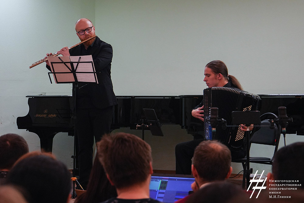 30 ноября в малом зале Нижегородской консерватории имени М.И. Глинки прошел концерт проекта «Modern accordion», в рамках которого музыканты представили пьесы современных российских композиторов для баяна и аккордеона. Исполнители – преподаватели и ассистенты-стажëры Нижегородской консерватории: В. Пеунов, М. Степанов, Е. Рогозин, М.Маясов и др.