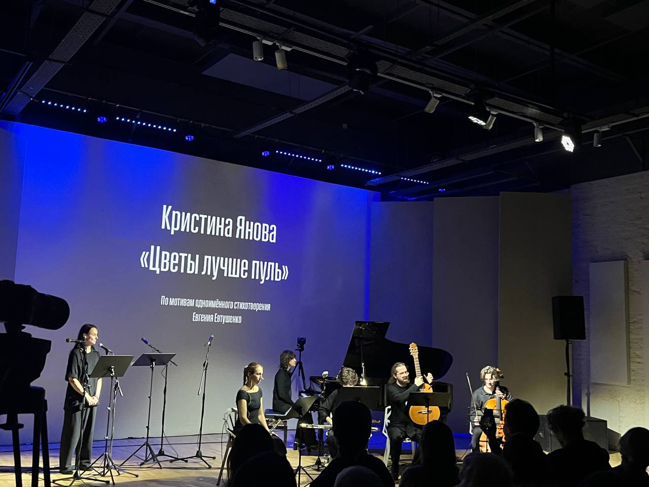 12 октября прошел отчетный концерт творческой резиденции «Лекции по русской литературе». Анна Поспелова, Екатерина Хмелевская, Кристина Янова и Сергей Шестаков в рамках совместного проекта Союза композиторов России и Дома творчества Переделкино написали новые произведения, которые были исполнены вокальным квартетом N’caged и ансамблем солистов Contemporary Music Company.
