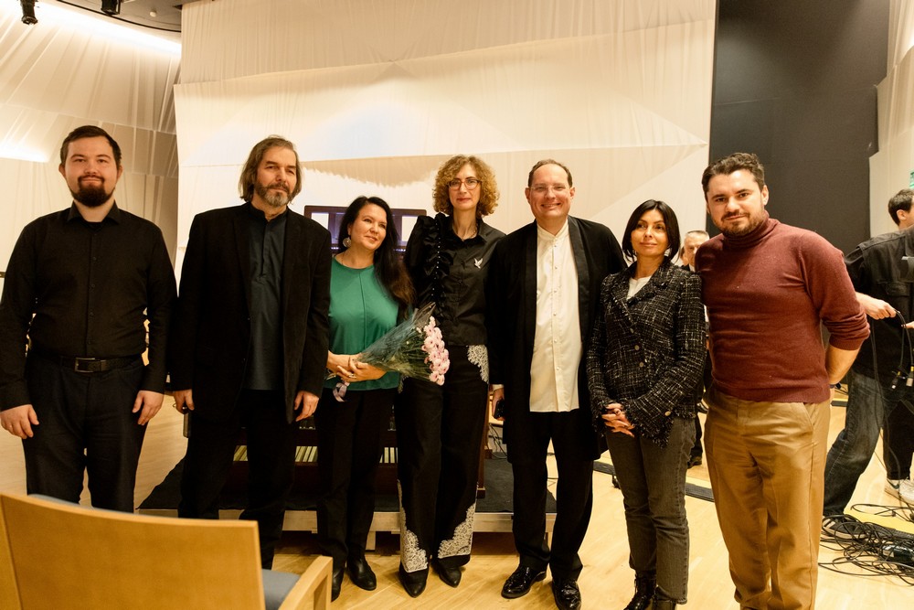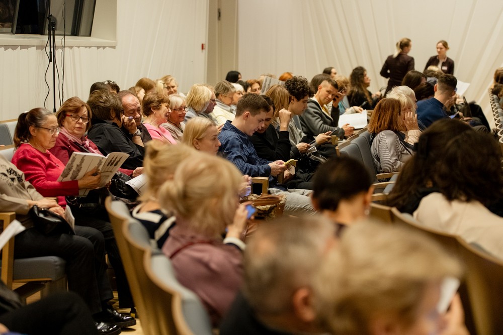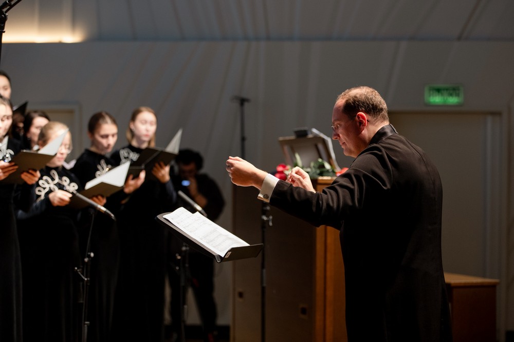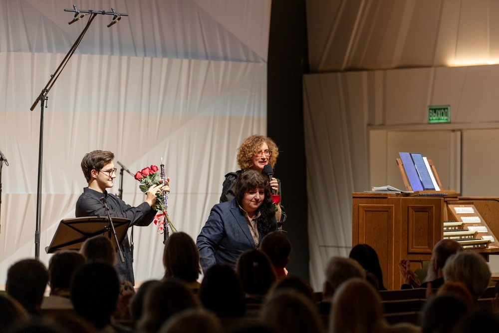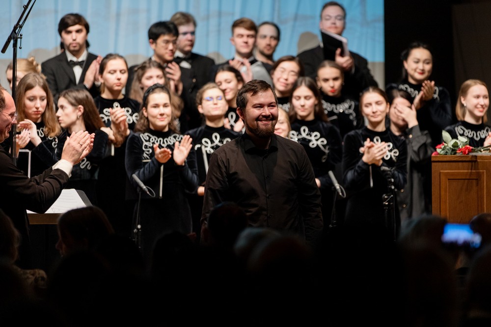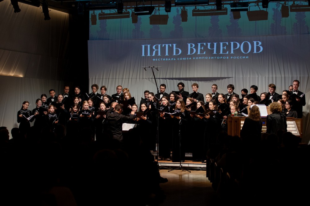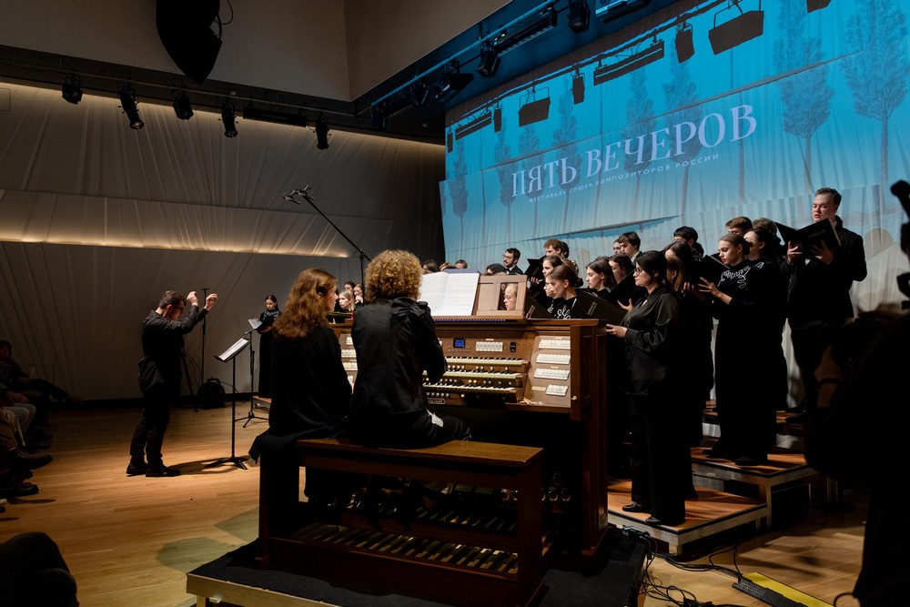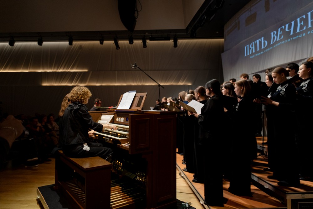 Фестиваль «Пять вечеров» продолжается. Делимся яркими кадрами хорового концерта в Малом зале Зарядья. Музыку композиторов Союза исполняли Камерный хор Московской консерватории (художественный руководитель и дирижер – Александр Соловьев), органистка Евгения Кривицкая и гобоист Фёдор Освер. Ведущая концерта – Евгения Кривицкая.