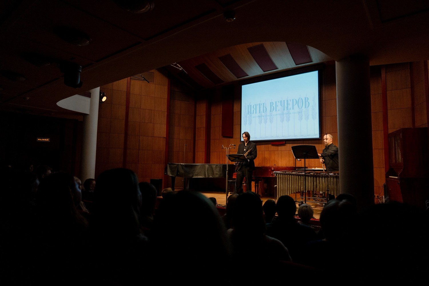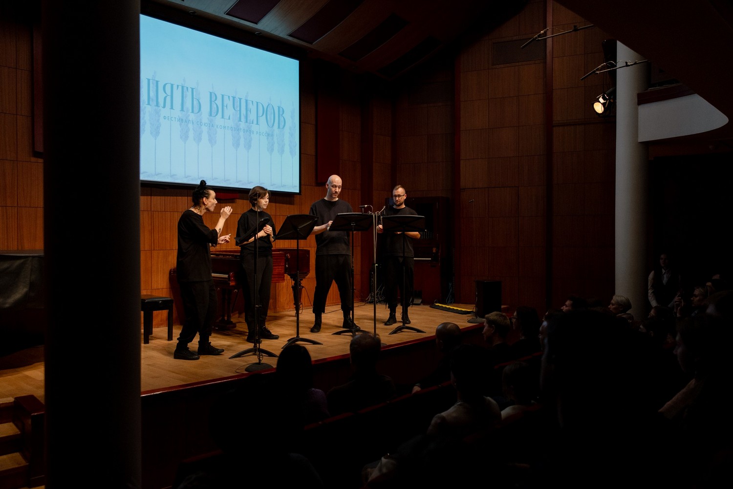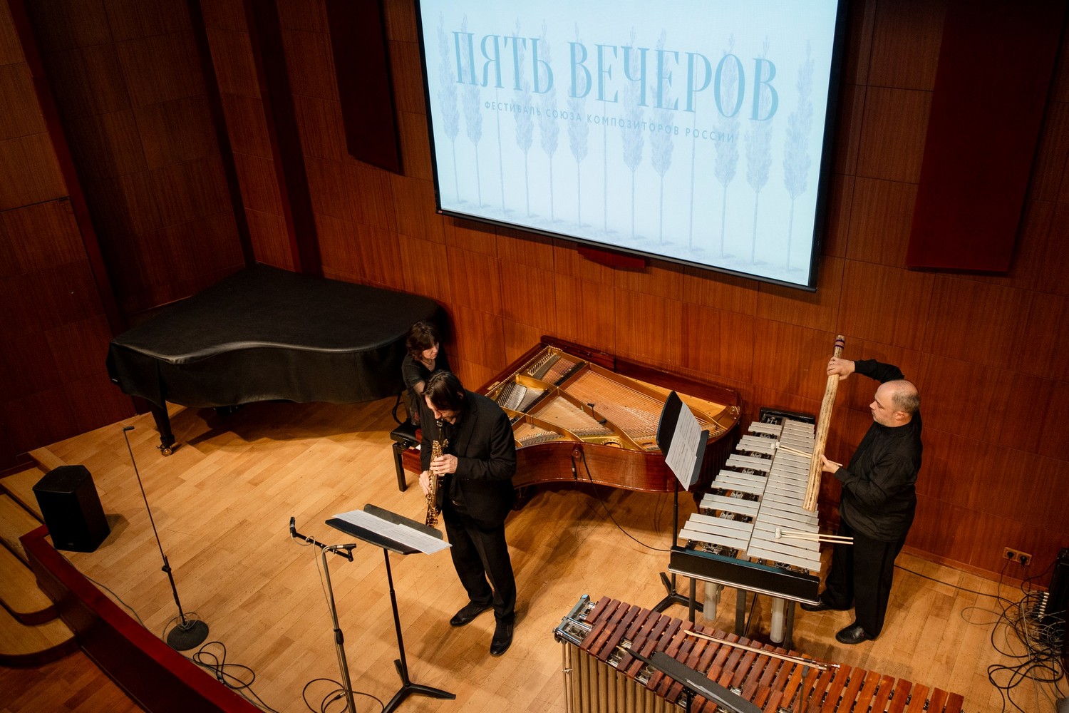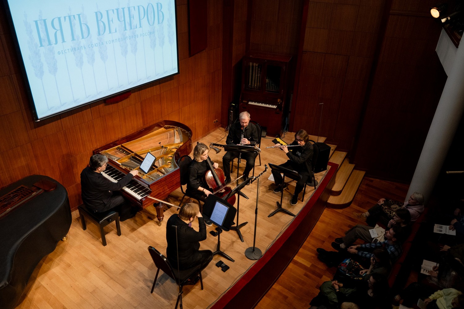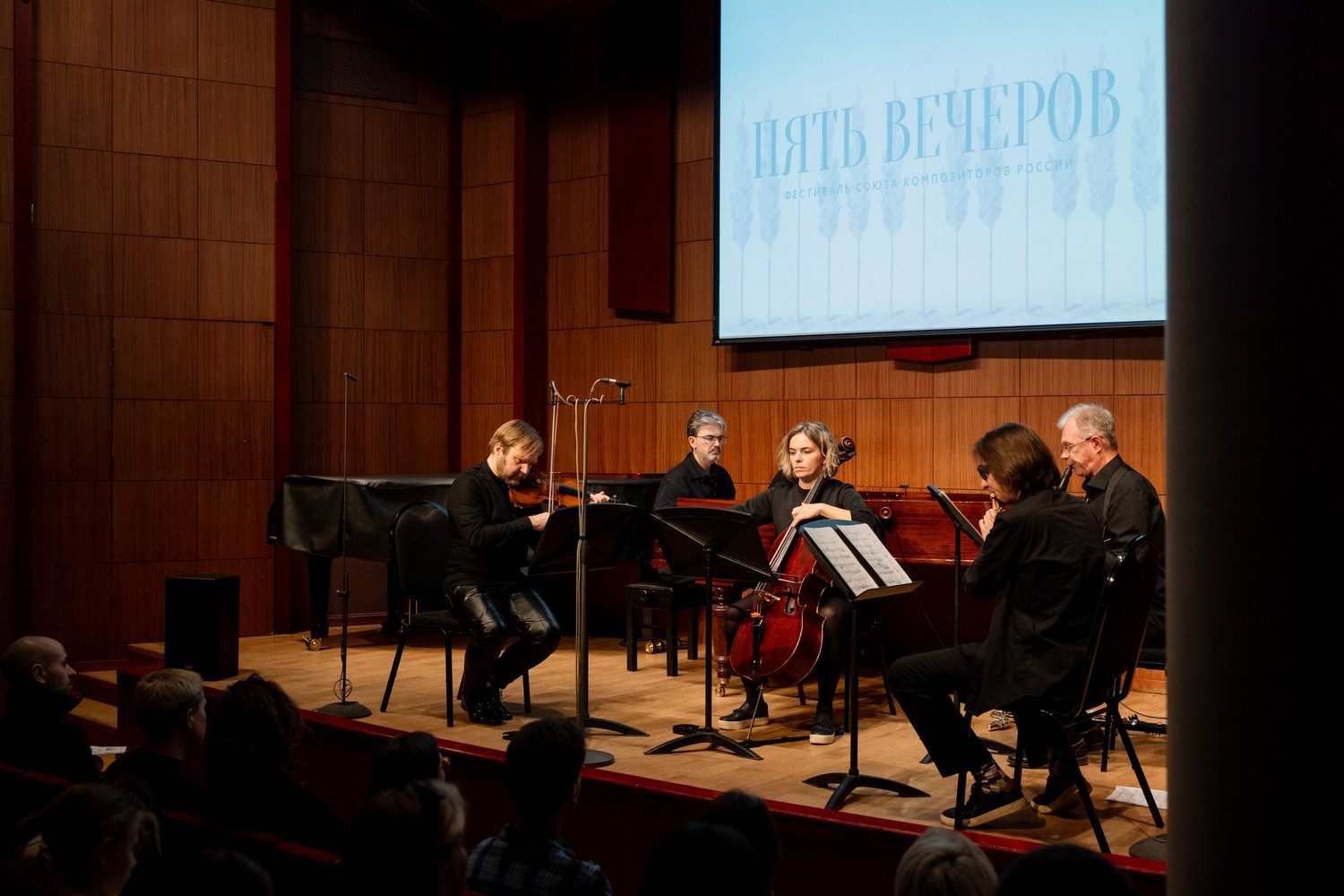 Фестиваль «Пять вечеров» продолжился концертом в Камерном зале Московской филармонии. Музыку композиторов Союза исполняли солисты «Студии новой музыки», N'Caged, Московского ансамбля современной музыки, Reheard. Ведущий – Богдан Королёк. Проект проходит при поддержке Минкультуры России.