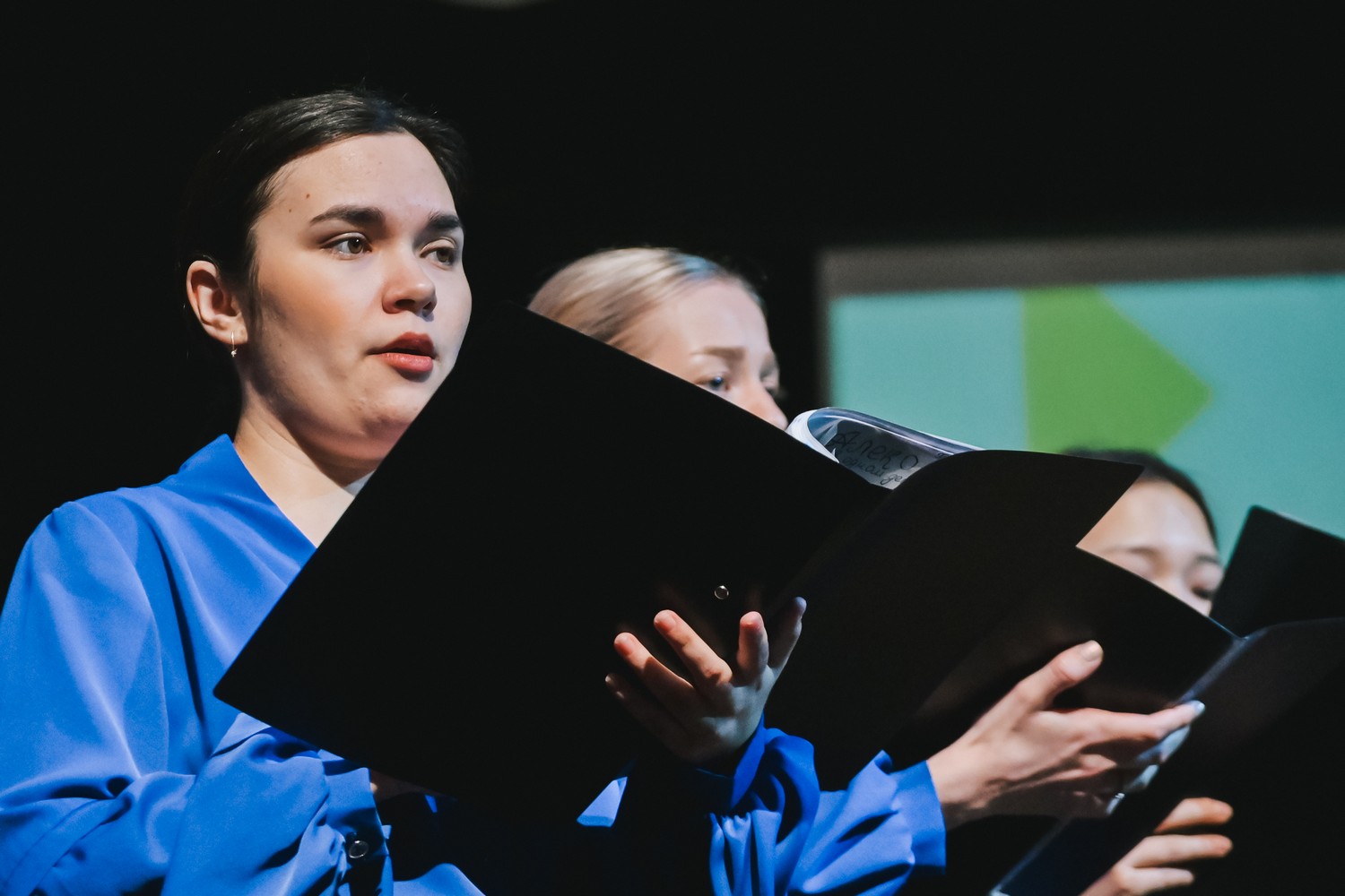 В программе прозвучали вокальные, хоровые и инструментальные произведения членов Союза композиторов России в исполнении Муниципального автономного учреждения «Красноярский камерный оркестр» и солистов Виталия Осипова (голос), Дениса Приходько, Андрея Бардина (фортепиано)
