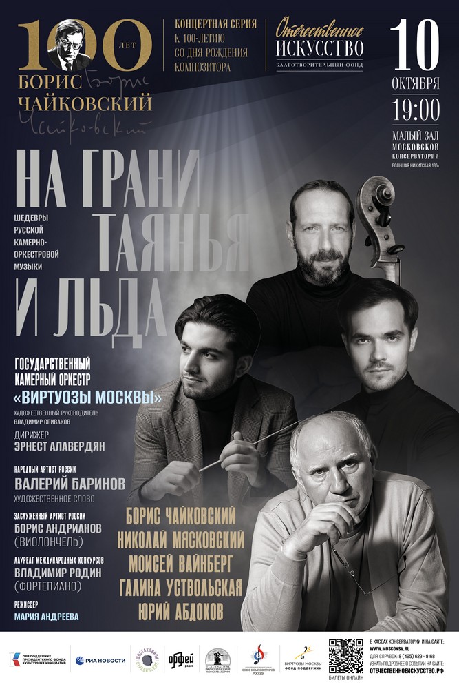 Подробности и билеты: https://xn--b1aahabavqyafge6ahbaedls9e.xn--p1ai/boris-chajkovskij-100-let/