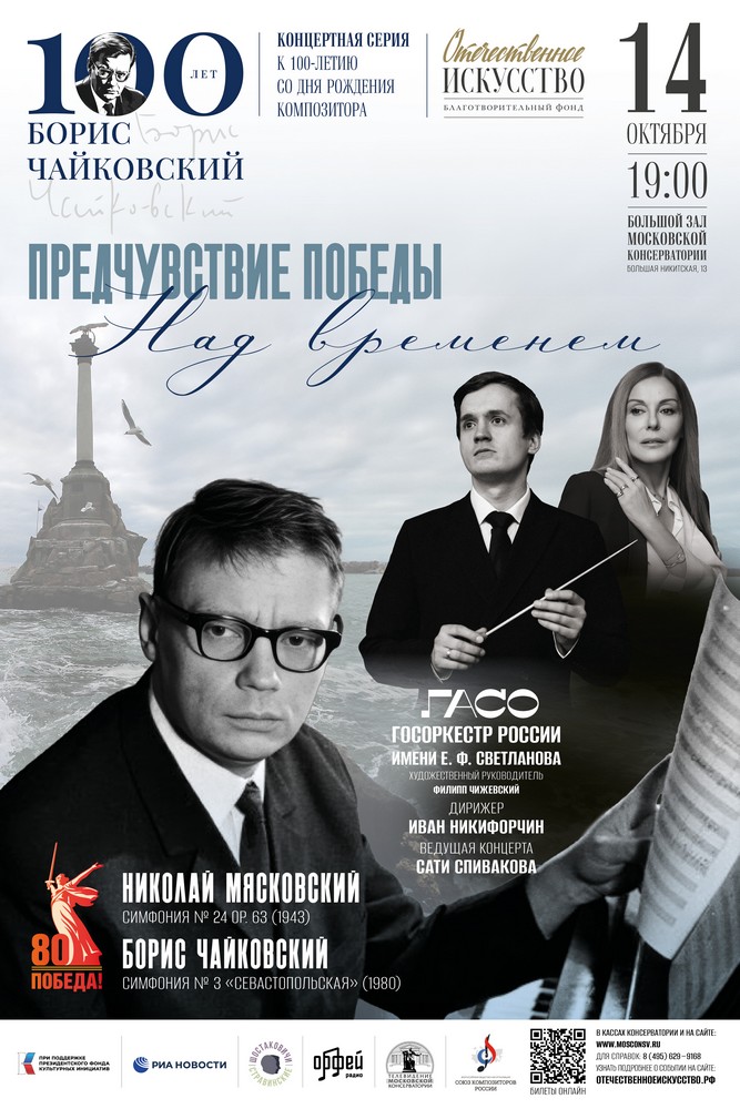- 14 октября, Большой зал консерватории. «Предчувствие Победы. Над временем». Прозвучит «Севастопольская симфония» Б.Чайковского. Исполнители — Государственный академический симфонический оркестр, дирижёр Иван Никифорчин.