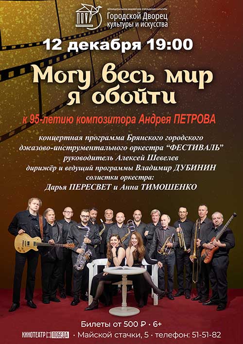 На сцене Городского дворца культуры и искусства в Брянске состоялась концертная программа, посвящённая 95-летию со дня рождения выдающегося советского и российского композитора, народного артиста СССР Андрея Павловича Петрова.
