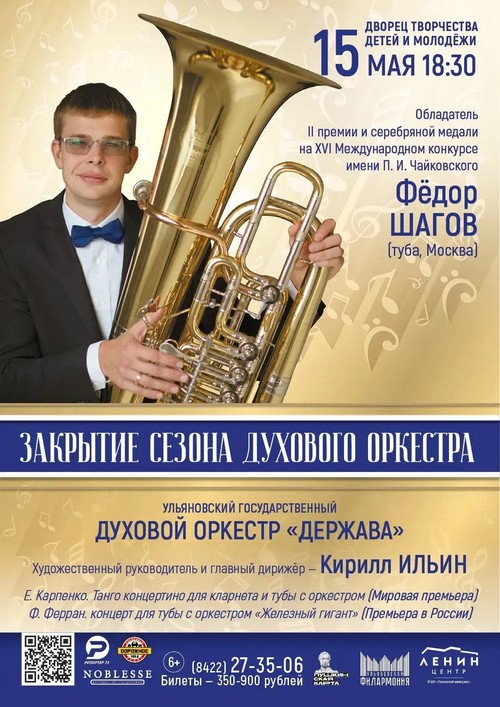 Исполнителем на редко солирующем инструменте — тубе — будет великолепный музыкант, обладатель II премии и серебряной медали XVI Международного конкурса имени П. И. Чайковского Фёдор Шагов (Москва). За дирижёрским пультом — художественный руководитель и главный дирижёр «Державы» Кирилл Ильин.