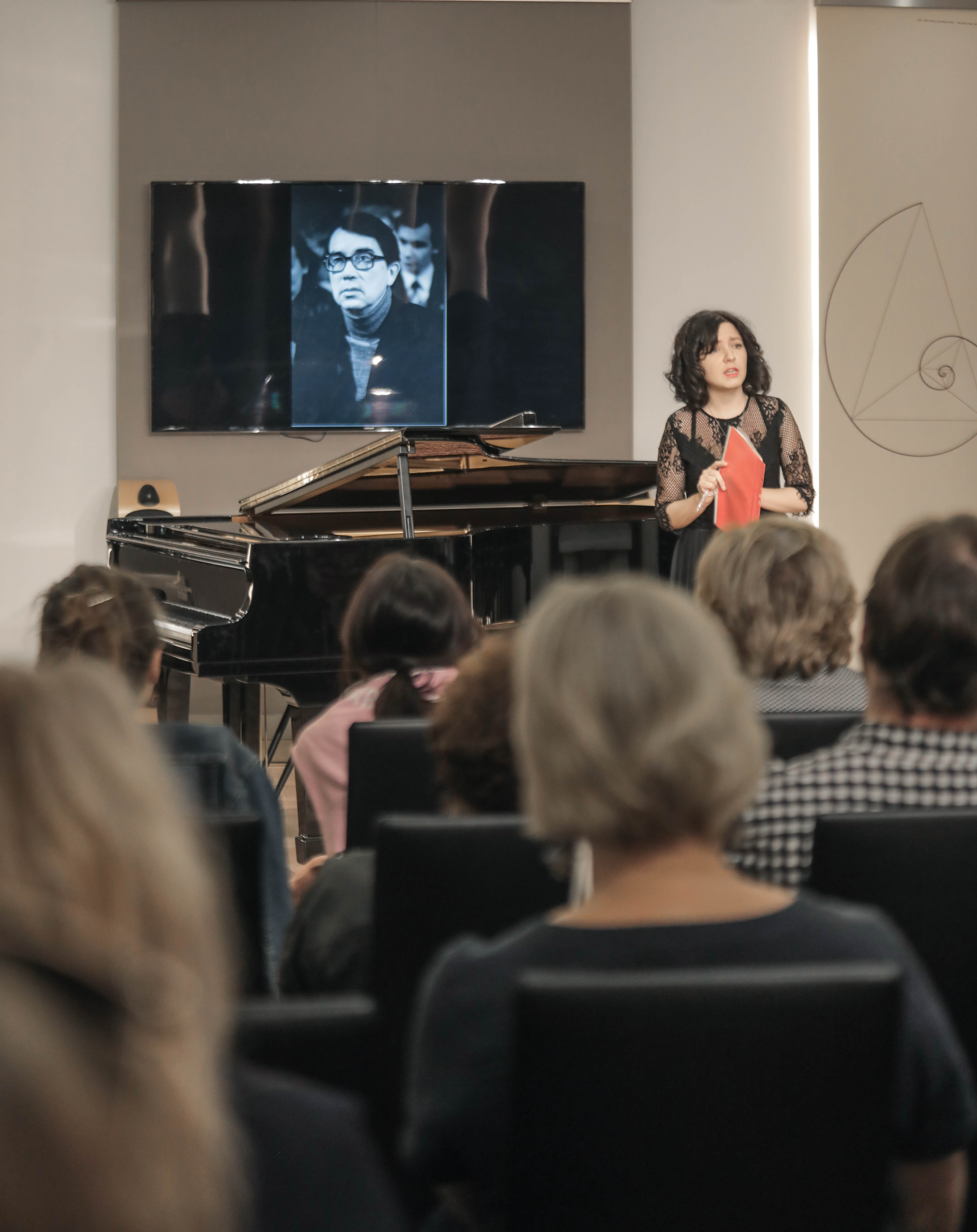 Ведущей и лектором концерта стала Ксения Супоницкая, кандидат искусствоведения и автор книги о Гаврилине в серии «Жизнь замечательных людей».