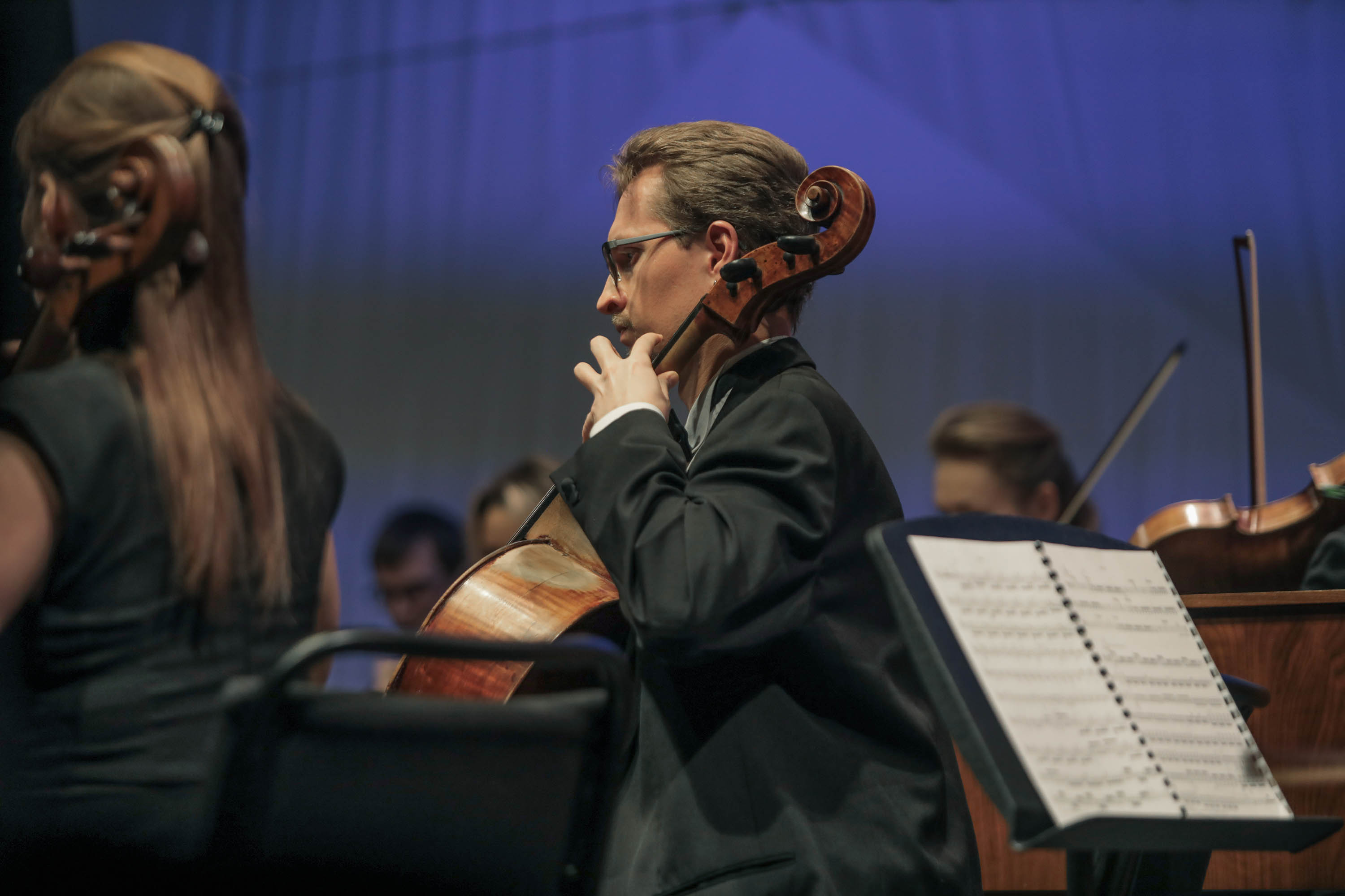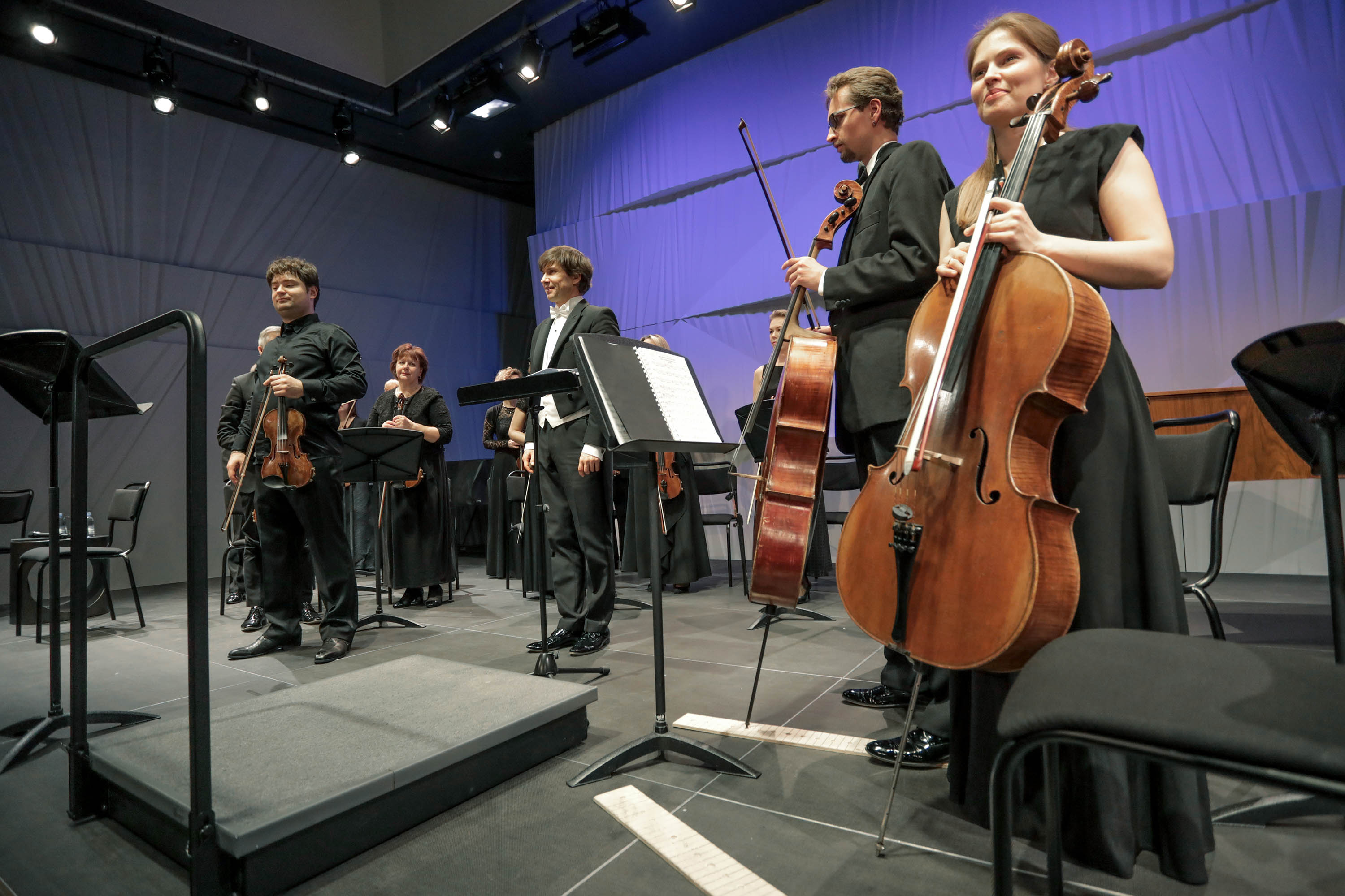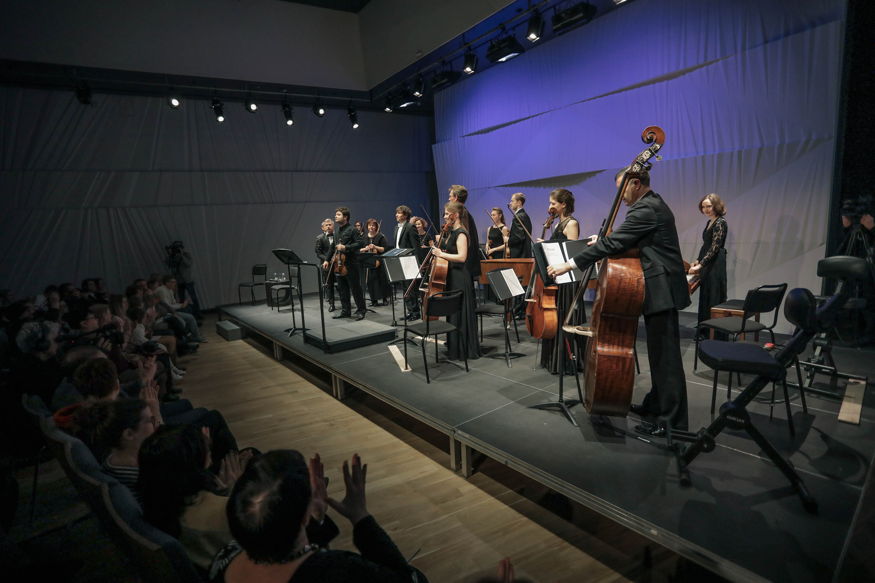 Перед зрителями в "Зарядье" выступают Оркестр Московского театра «Новая опера» имени Е.В. Колобова и скрипач Иван Почекин.