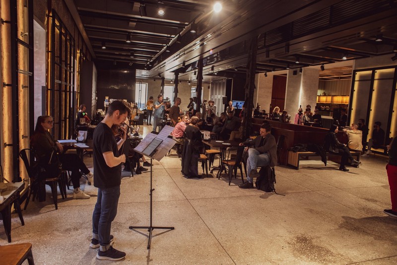 Участники проекта "Композиторские читки" Кирилл Архипов, Елена Вайнберг, Ригель Винская, Роман Пархоменко, Александр Перов, Даниил Посаженников, Сергей Шестаков, Антонина Шашкина и члены Союза композиторов России Григорий Зайцев, Екатерина Суворкина, Елизавета Саничева и Наталья Прокопенко приняли участие в композиторской лаборатории micromusiclab.