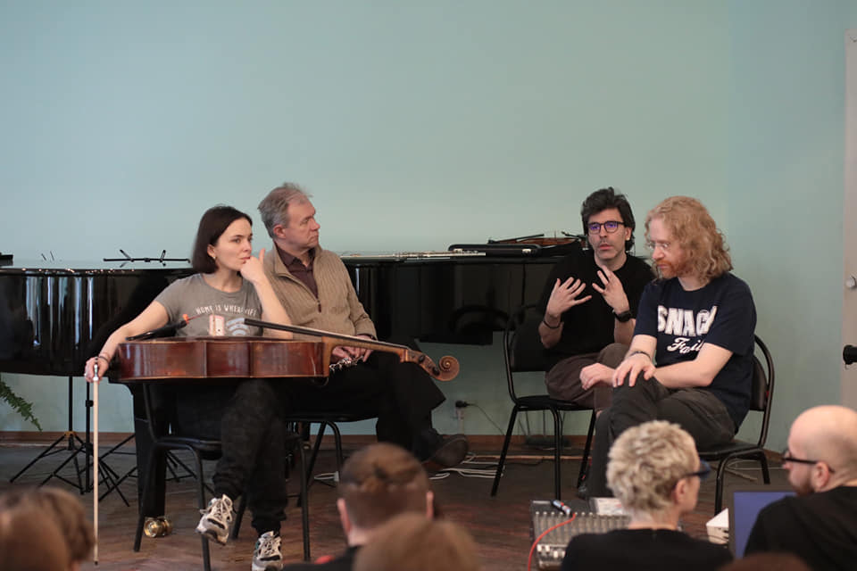 На Читках с Московским ансамблем современной музыки послушали как звучит графическая нотация в «Композиции» Дарьи Мараевой и «Колыбель» Александра Лукашова, поговорили о расширенных исполнительских техниках в «Deep in Universe» Надежды Бояджиевой и о том, зачем Вадиму Генину кофейный автомат для его «Творчества».