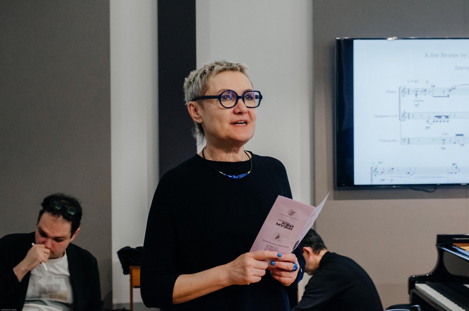 МАСМ и композитор Владимир Горлинский обсудили «Просто красивую женскую музыку» Ригель Винской, A few Stories by J. D. Salinger в прочтении Никиты Кочура, спектральную красоту «Рассвета» Сергея Шестакова, приемы в триптихе «Бесценная жидкость» Полины Ярыгиной, а также пьесу Half of a cat Ильи Вязова – трибьют опусу Антона Светличного.