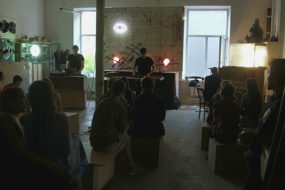 Резидент Союза композиторов и саундартист Дмитрий Мазуров вместе с Георгием Кудрявцевым (перкуссия) и Владимиром Жалниным (препарированное фортепиано) представили перформанс "Всё, что звучит вокруг" на фестивале современных художественных практик Art-Space-Hopping (A-S-H). Оммаж Дж.Кейджу прозвучал в мастерской Виталия Бурыкина на территории завода "Мосштамп". Событие было задумано как встреча-диалог – каждый слушатель при желании смог стать соавтором музыкального перформанса.