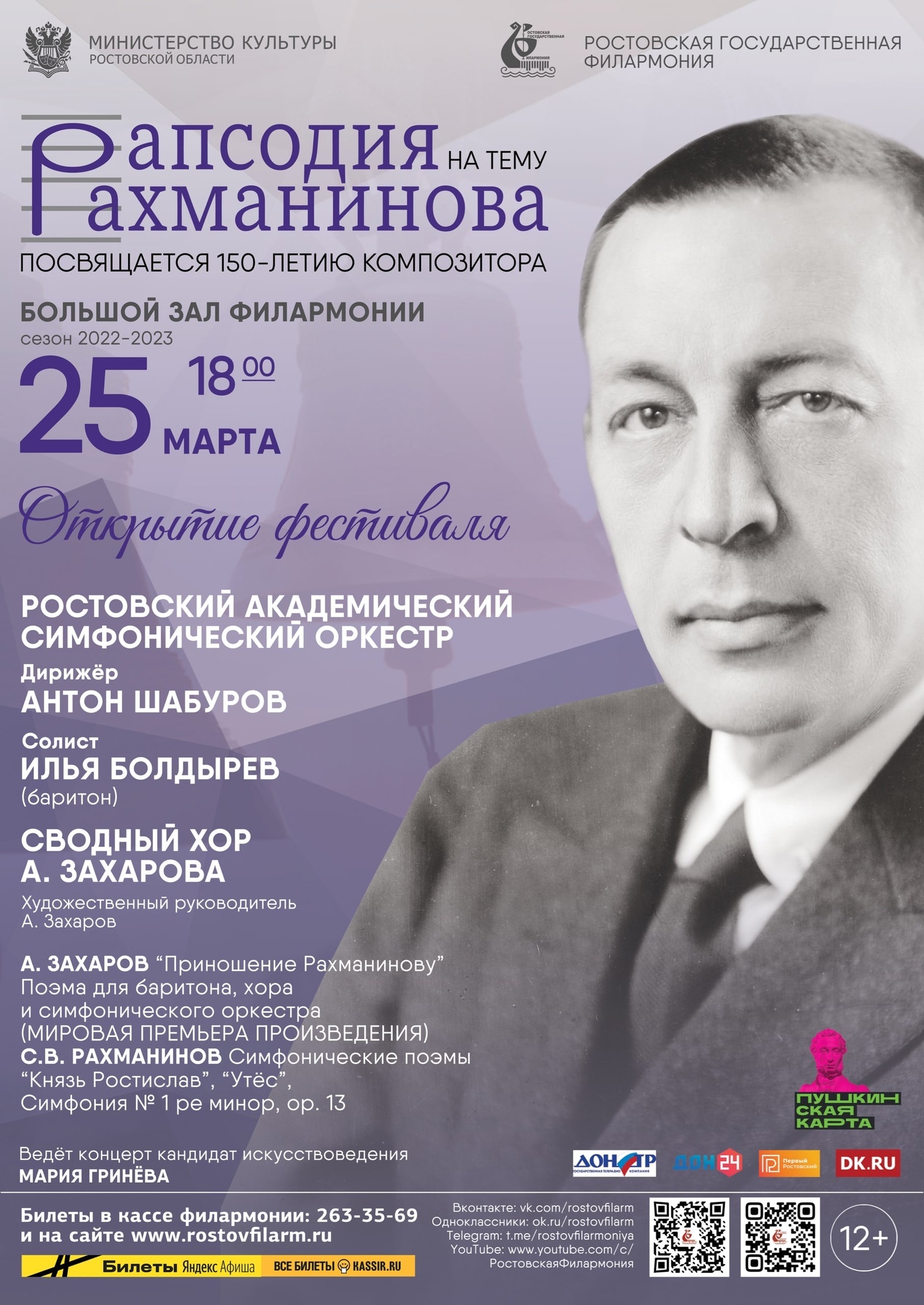 С 25 марта по 1 апреля на 5 площадках Ростова-на-Дону проходил большой фестиваль «Рапсодия на тему Рахманинова», посвящённый 150-летию со дня рождения выдающегося русского композитора, дирижера и пианиста.