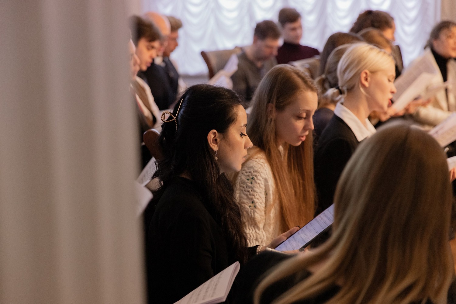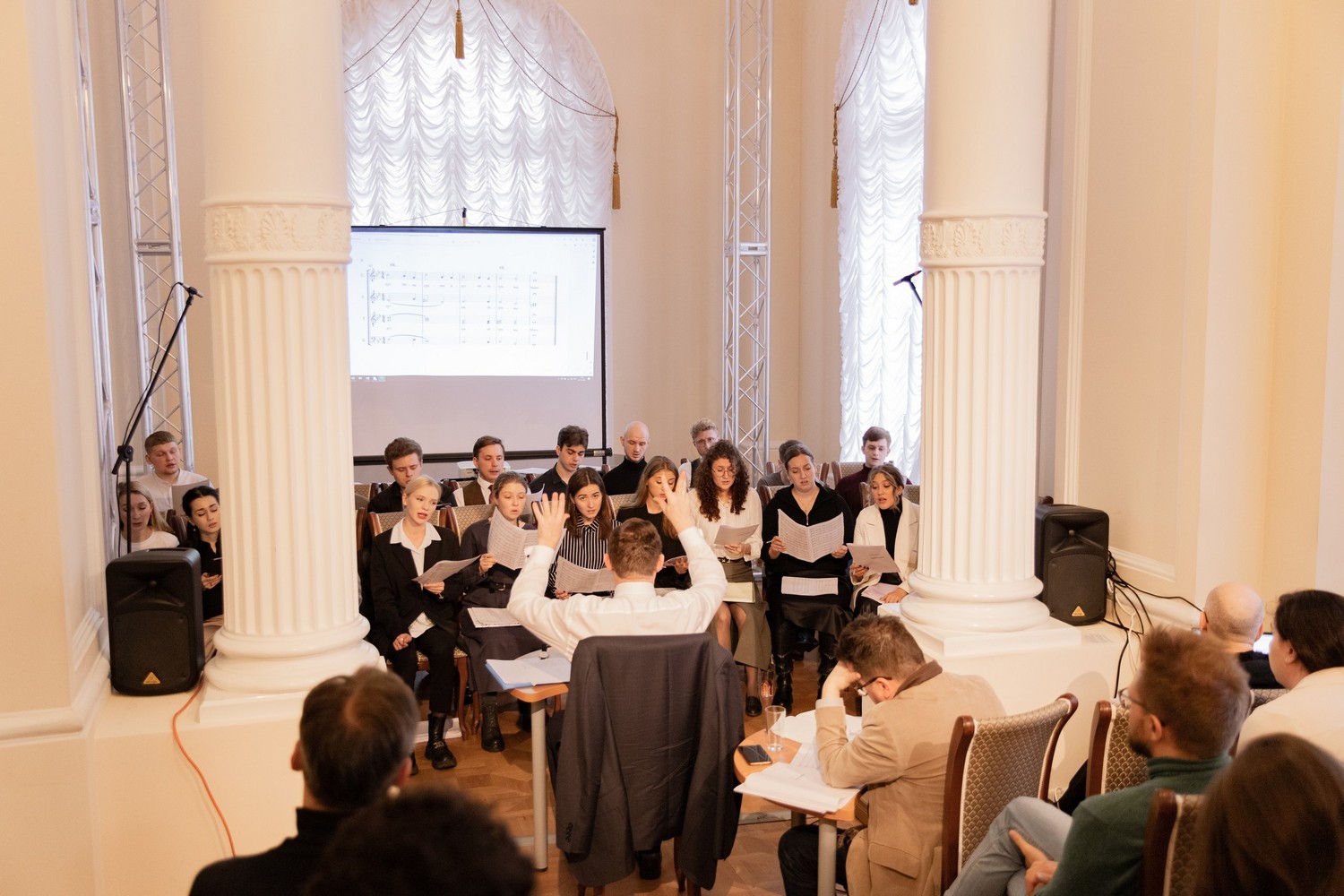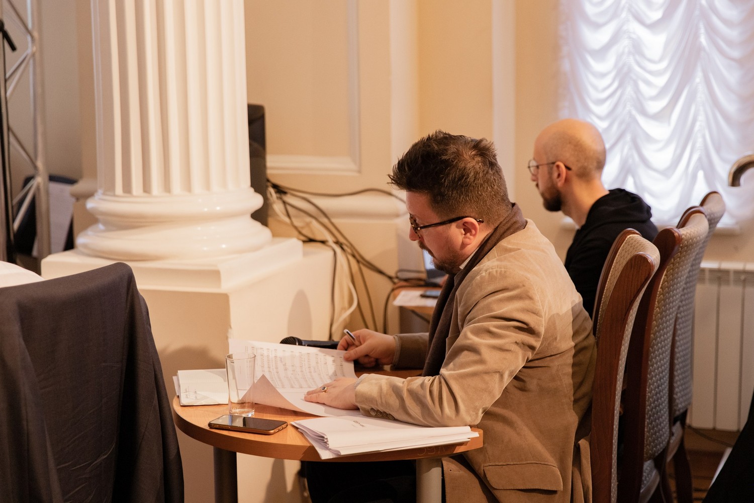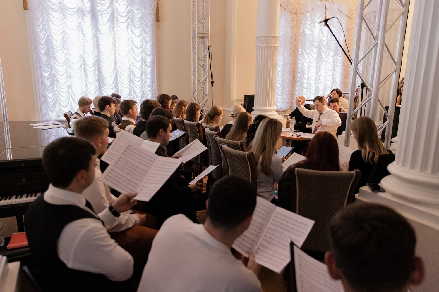 Александр Рыжинский рассказал, что хор готовил партитуры в течение недели. Главный хормейстер Денис Морозов провел две вечерние репетиции по два и три часа соответственно – это привычный темп работы. Со своим руководителем хор встретился уже на самих «читках» – коллектив был готов представить свою версию присланных партитур.