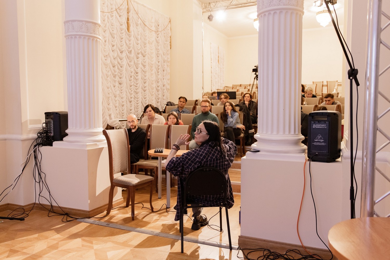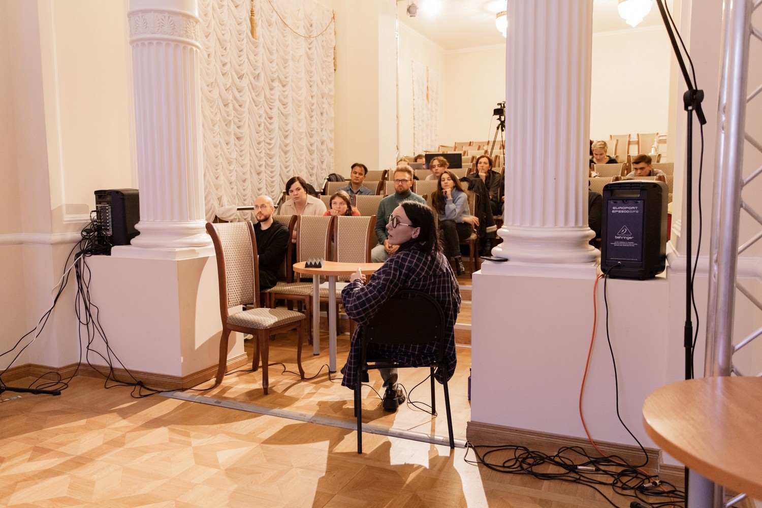 Стремление дать композиторам широкий угол обзора на хоровую музыку прослеживалось и в выборе спикеров для лекций и воркшопов. Кузьма Бодров, Алексей Ретинский и Алексей Сысоев рассказывали о своем опыте работы с хором в разных жанрах. Ольга Бочихина устроила любопытную практику: участники создавали партитуру из текста Сэмюэла Беккета с помощью собственного голоса. В последний день проекта вместе с журналистом, автором подкаста «Фиолетовый снег» Ириной Севастьяновой Бочихина рассказала о пределах контроля голоса в музыке в Артемьев-центре. Было что обсудить и исполнителям: Александр Рыжинский прочитал лекцию об особенностях тембрики и фактуры хоровой композиции ХХ века, а лидер ансамбля nCaged Aрина Зверева поделилась своей болью о проблемах в нотации в современной вокальной музыке. В процессе общей работы, диалога участники и спикеры затрагивали непростые темы. Так, Алексей Ретинский рассуждал, как важно для композитора сокращать и уничтожать дистанцию между ним самим и его нотным текстом: «Лучший пример – музыка фольклора. Она часть повседневной жизни, люди пребывают в самой ее материи – это то, чего нам не хватает. Освоив исторический музыкальный опыт, мы должны сделать его своим. Как сказал Малер, традиция – это передача огня, а не поклонение пеплу». К счастью, пепла в музыке участников «Композиторских читок» не слышно.