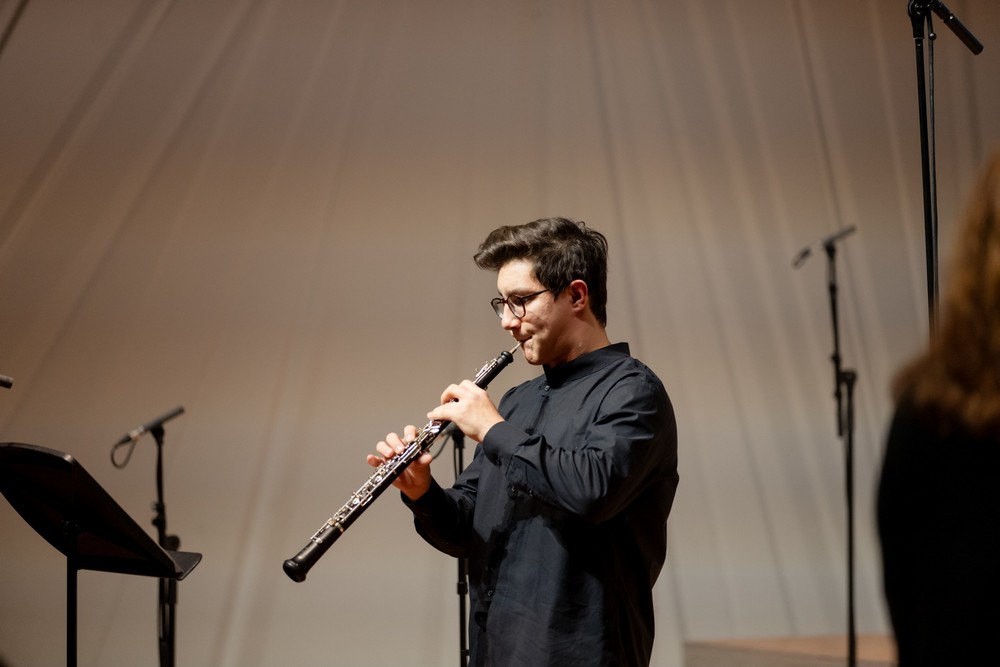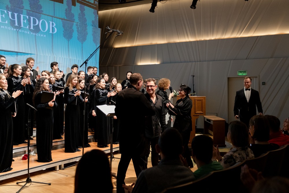Фестиваль «Пять вечеров» продолжается. Делимся яркими кадрами хорового концерта в Малом зале Зарядья. Музыку композиторов Союза исполняли Камерный хор Московской консерватории (художественный руководитель и дирижер – Александр Соловьев), органистка Евгения Кривицкая и гобоист Фёдор Освер. Ведущая концерта – Евгения Кривицкая.