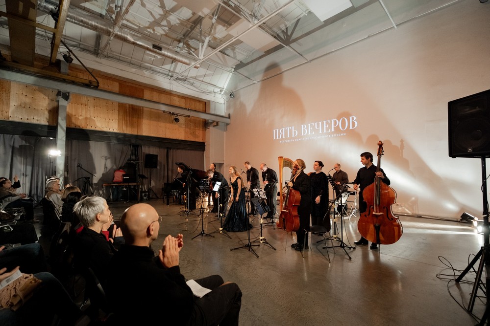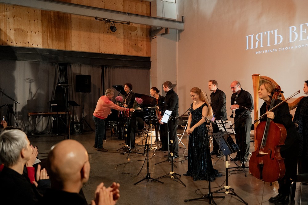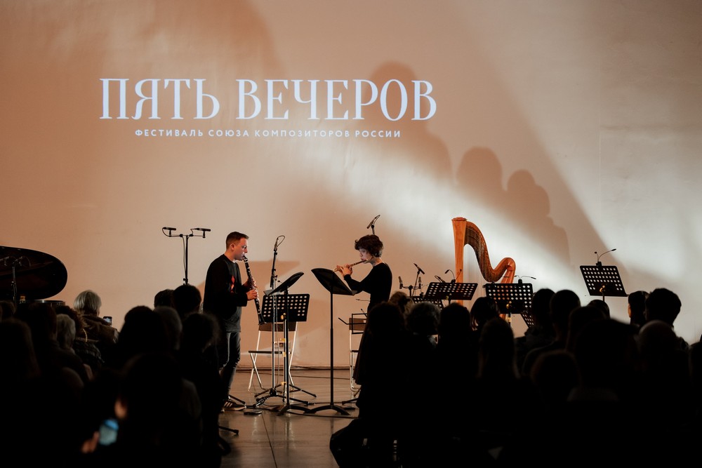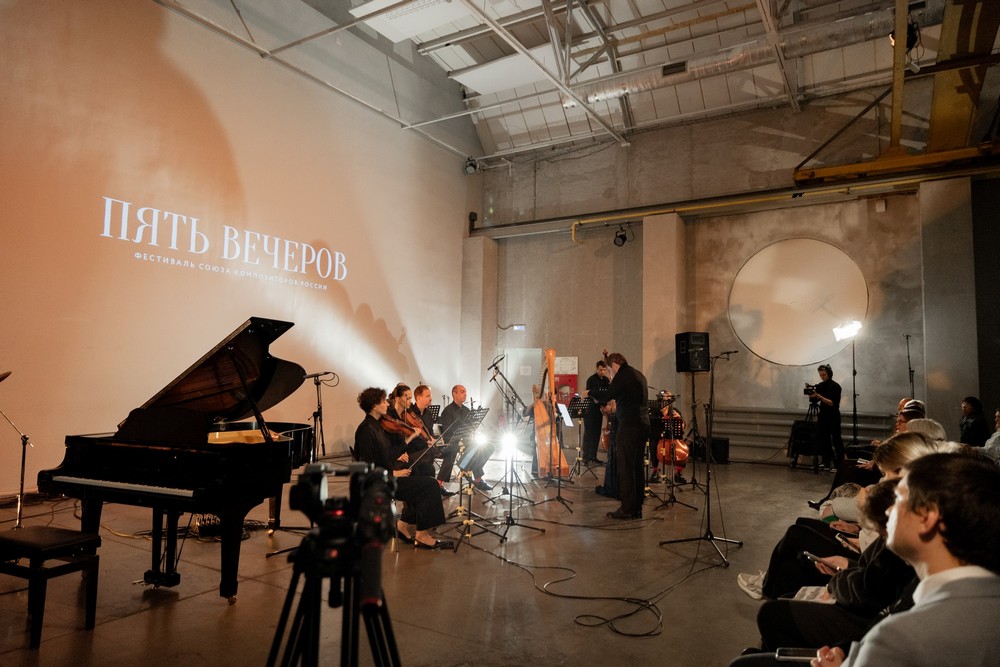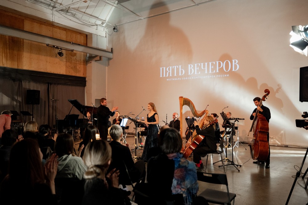 Фестиваль «Пять вечеров» продолжился концертом в ДК Рассвет. Музыку композиторов Союза исполняли солисты OpensoundOrchestra, CEAM Artists, певица Наталья Смирнова, гитарист Алексей Чичилин.