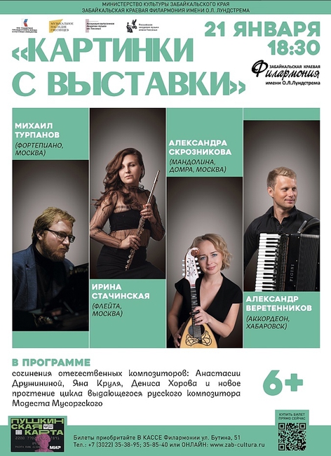 Денис Хоров: «Мне радостно, что такие великолепные музыканты, как Ирина Стачинская, Александра Скрозникова, Александр Веретенников и Михаил Турпанов, оказались открытыми к новой музыке современных российских авторов. Это не первый гастрольный тур квартета с произведениями композиторов Союза, однако в предстоящей программе музыке молодых впервые будет посвящено целое отделение. Основной идеей тура по Дальнему Востоку стал концепт "картинности". В новом музыкальном прочтении – флейта, домра, аккордеон и фортепиано – прозвучит цикл Модеста Мусоргского "Картинки с выставки". Премьеры сочинений Анастасии Дружининой "Байкальская фантазия", Яна Круля "Сияние", Эльмира Низамова "Кобанский танец" и моя пьеса "Балканский ветер", являясь программными произведениями, продолжат концепт русского классика и станут музыкальными зарисовками композиторских впечатлений».