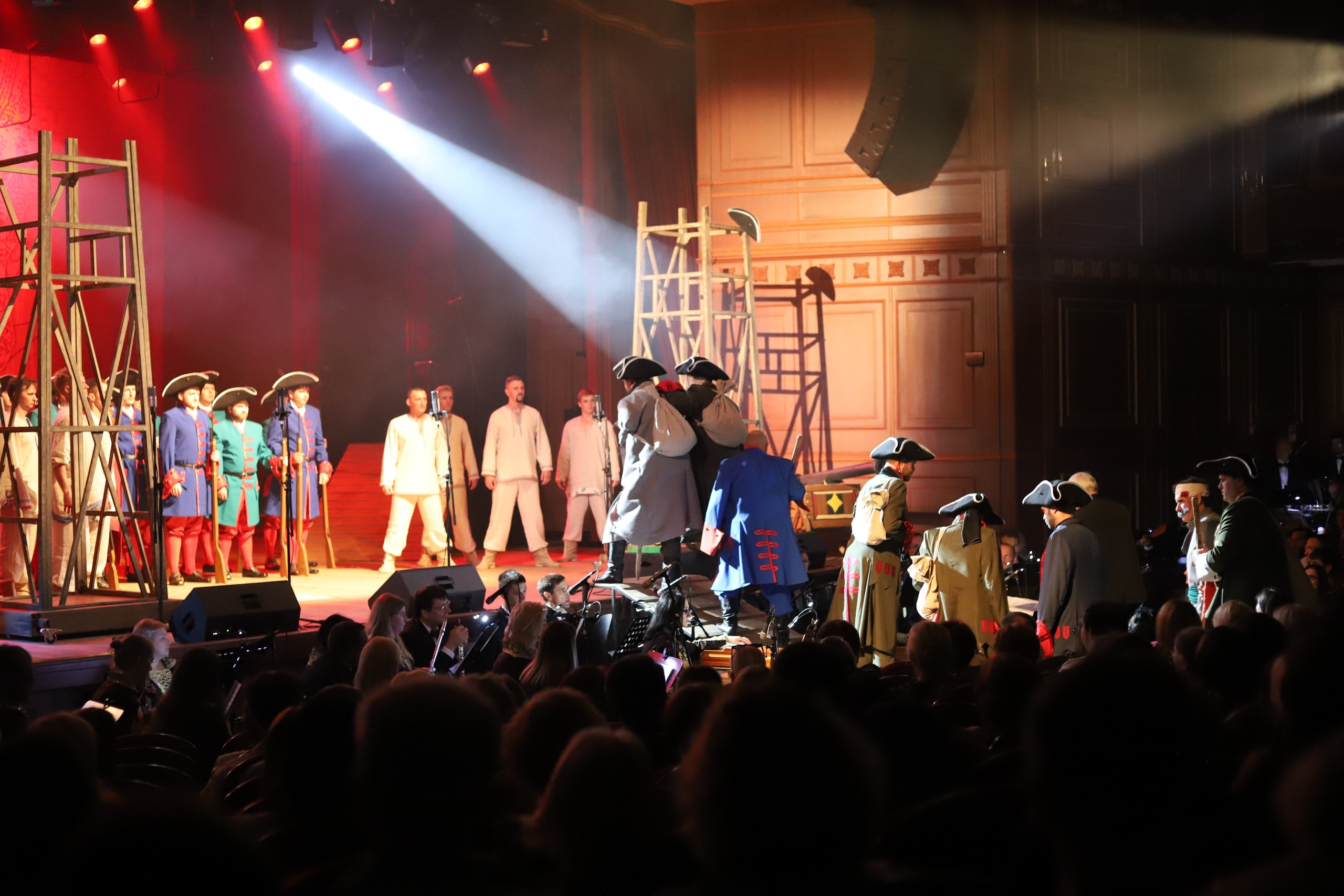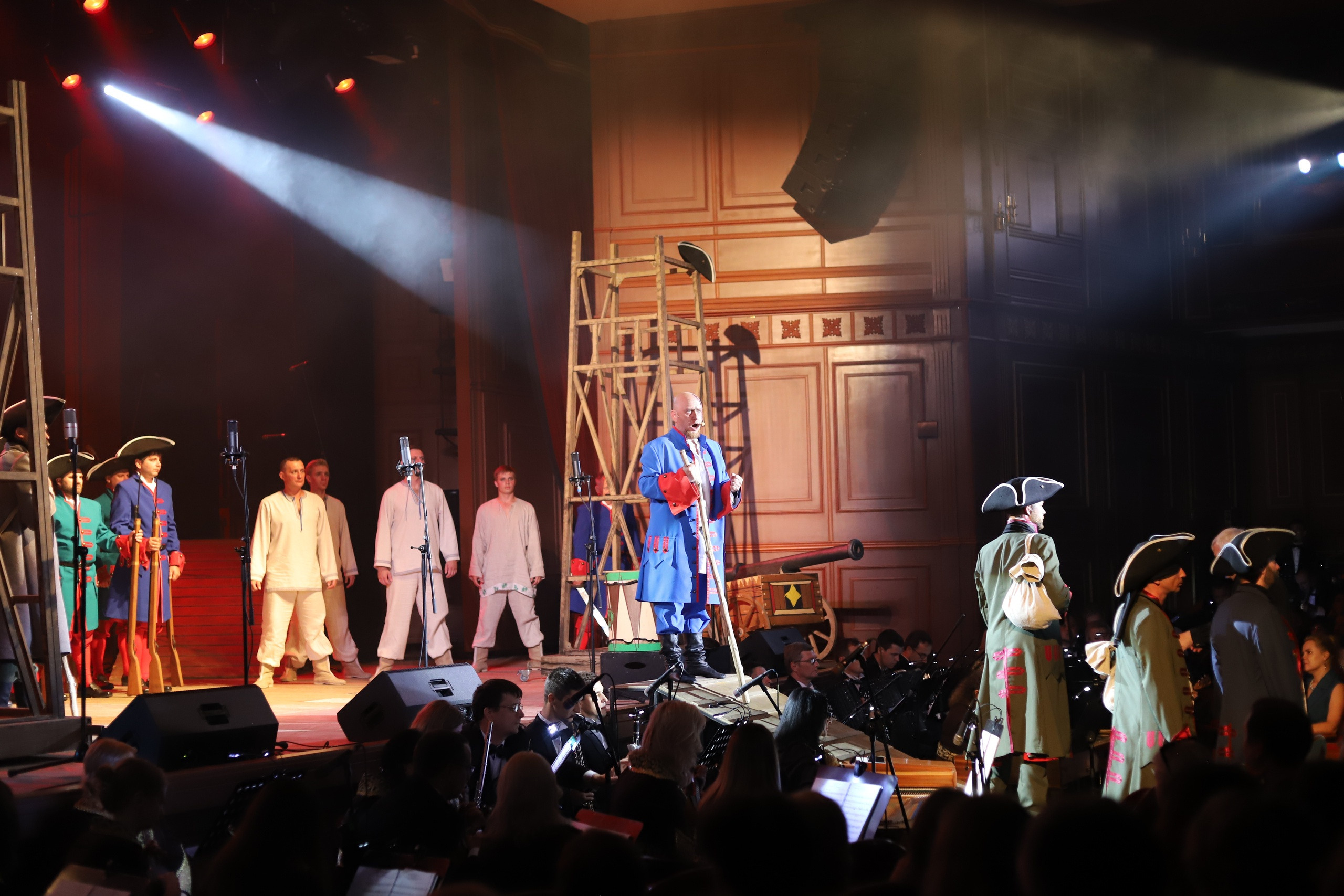 В постановке принимают участие творческие силы Белгородской государственной филармонии – Белгородский академический русский оркестр, Академический хор, Ансамбль танца и ведущие солисты-вокалисты филармонии – Ирина Хубаева – Любушка Аладьина, казачка (сопрано), Василий Задорожный – Григорий Прозоровский, рекрут (тенор), Наталья Воскресенская – Набожная Мария (меццо-сопрано), к которым присоединились известные российские артисты Владимир Байков – Фельдмаршал Шереметев (бас, Москва), Алексей Аносов – Савва Айгустов (баритон, Донецк), Иван Григорьев – Митрополит Иустин (бас, Самара), Евгения Кривицкая (орган, Москва, в роли Кассандры Войны).