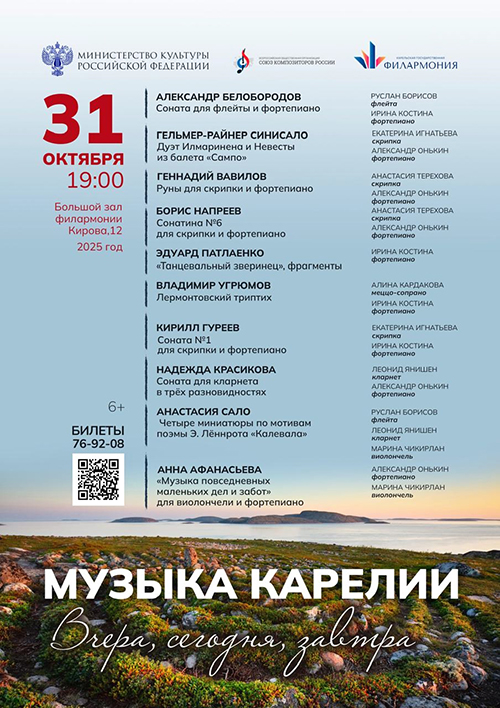 31 октября в Большом зале Карельской государственной филармонии состоится концерт «Музыка Карелии: вчера, сегодня, завтра». C этого концерта начинается музыкальная эстафета, приуроченная к юбилею Союза композиторов Карелии: в 2027 году ему исполнится 90 лет.