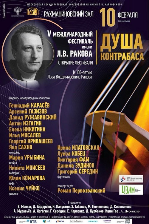 10 февраля в Рахманиновском зале Московской государственной консерватории имени П.И. Чайковского состоится торжественное открытие V Международного фестиваля имени Льва Владимировича Ракова, посвященного 100-летию со дня рождения музыканта.