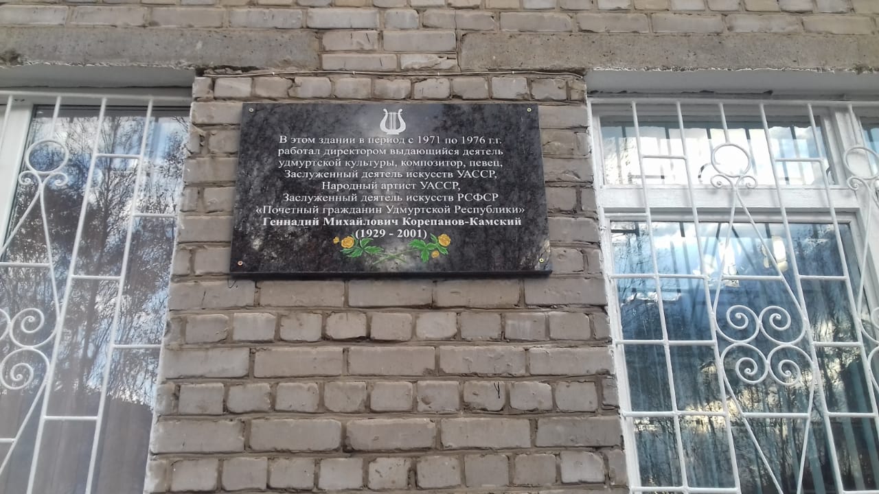 Доску установили на фасаде республиканского музыкального колледжа, где Геннадий Корепанов-Камский работал директором с 1971 по 1976 годы.