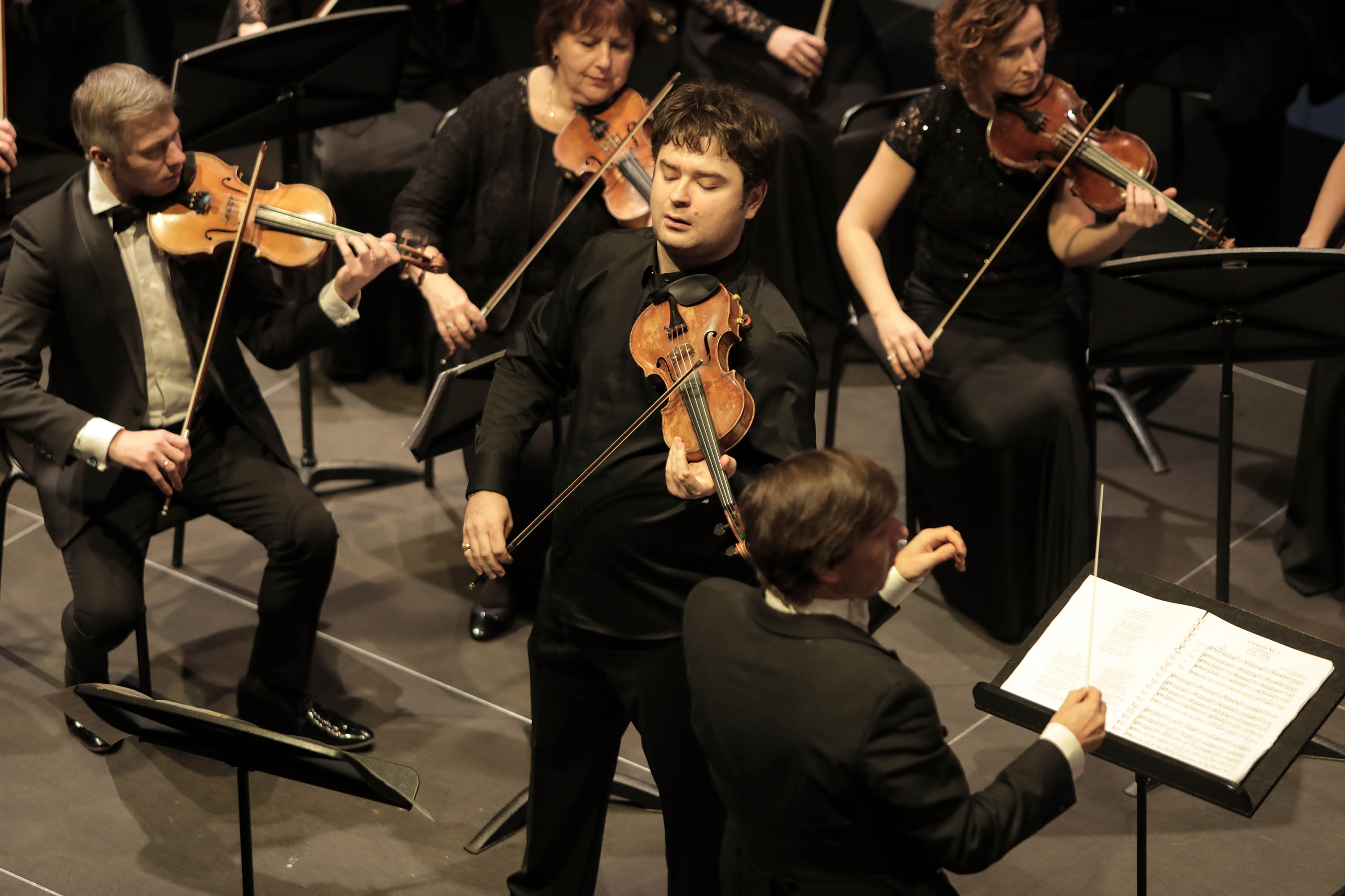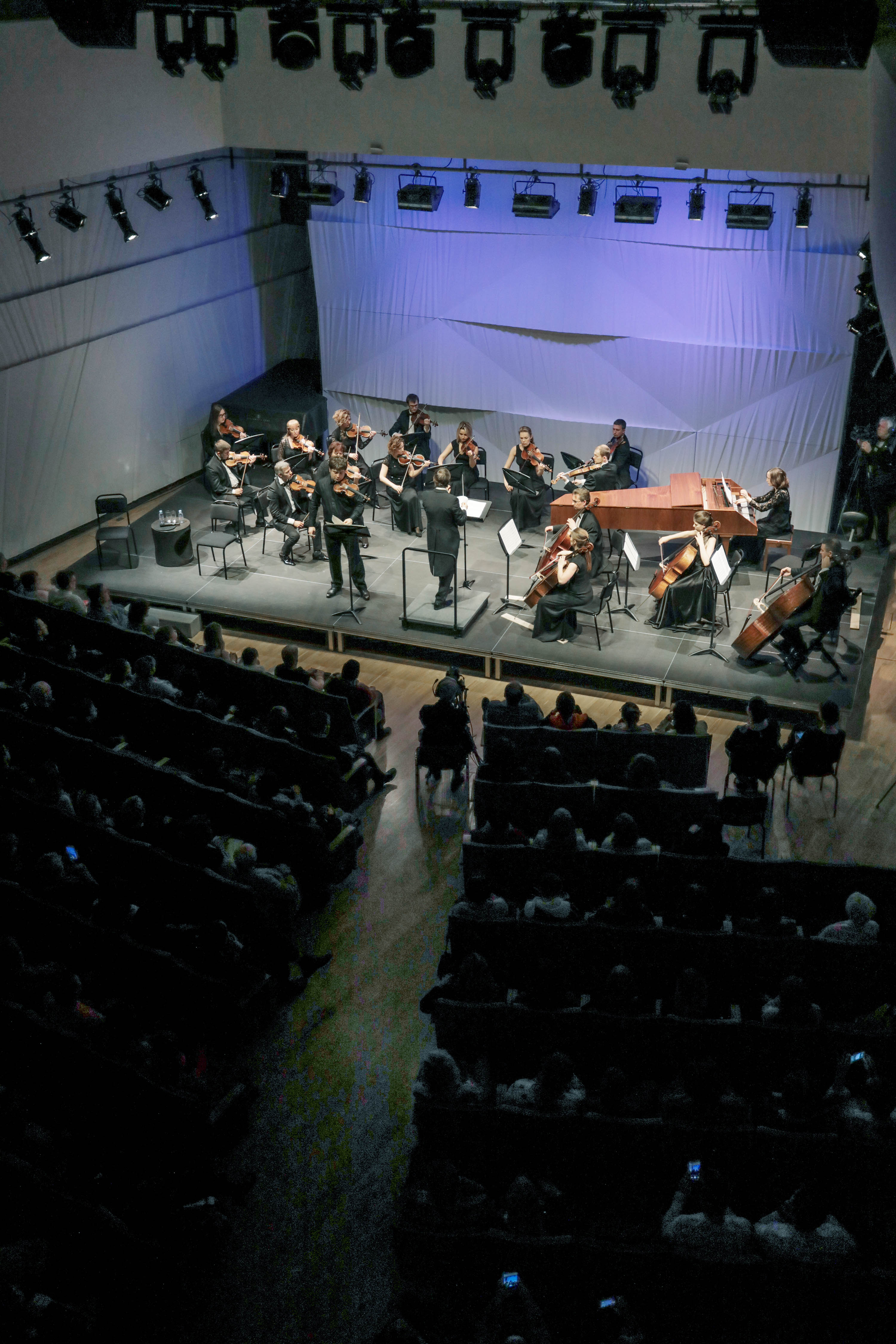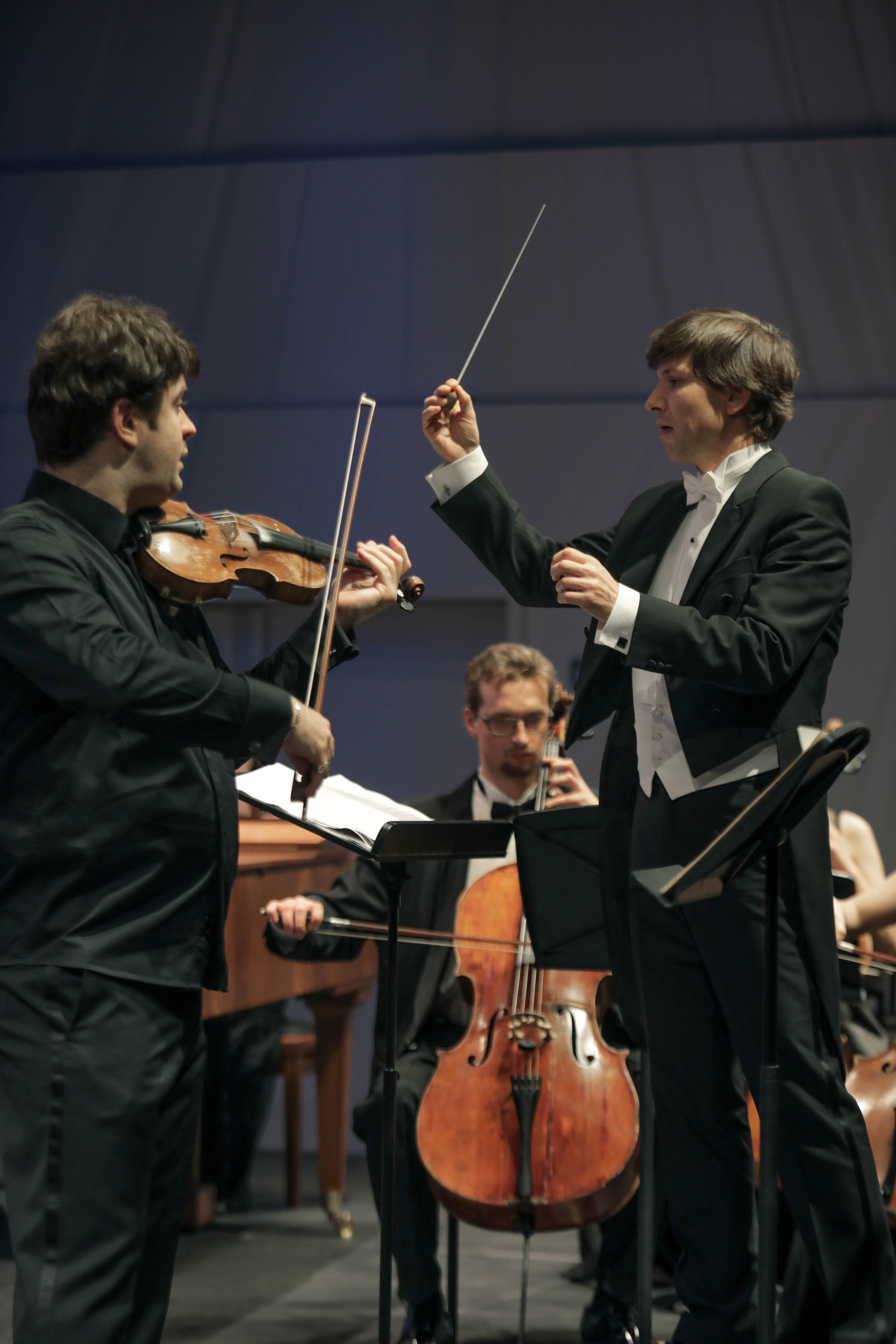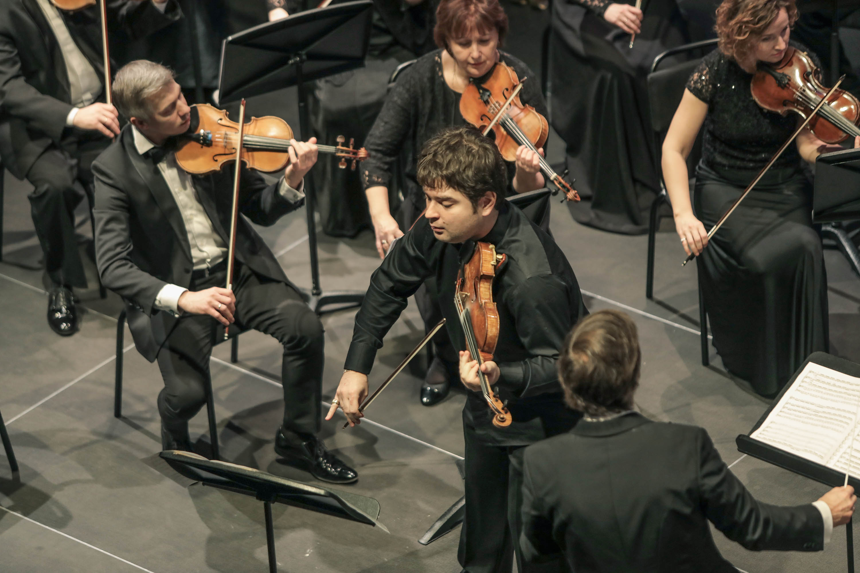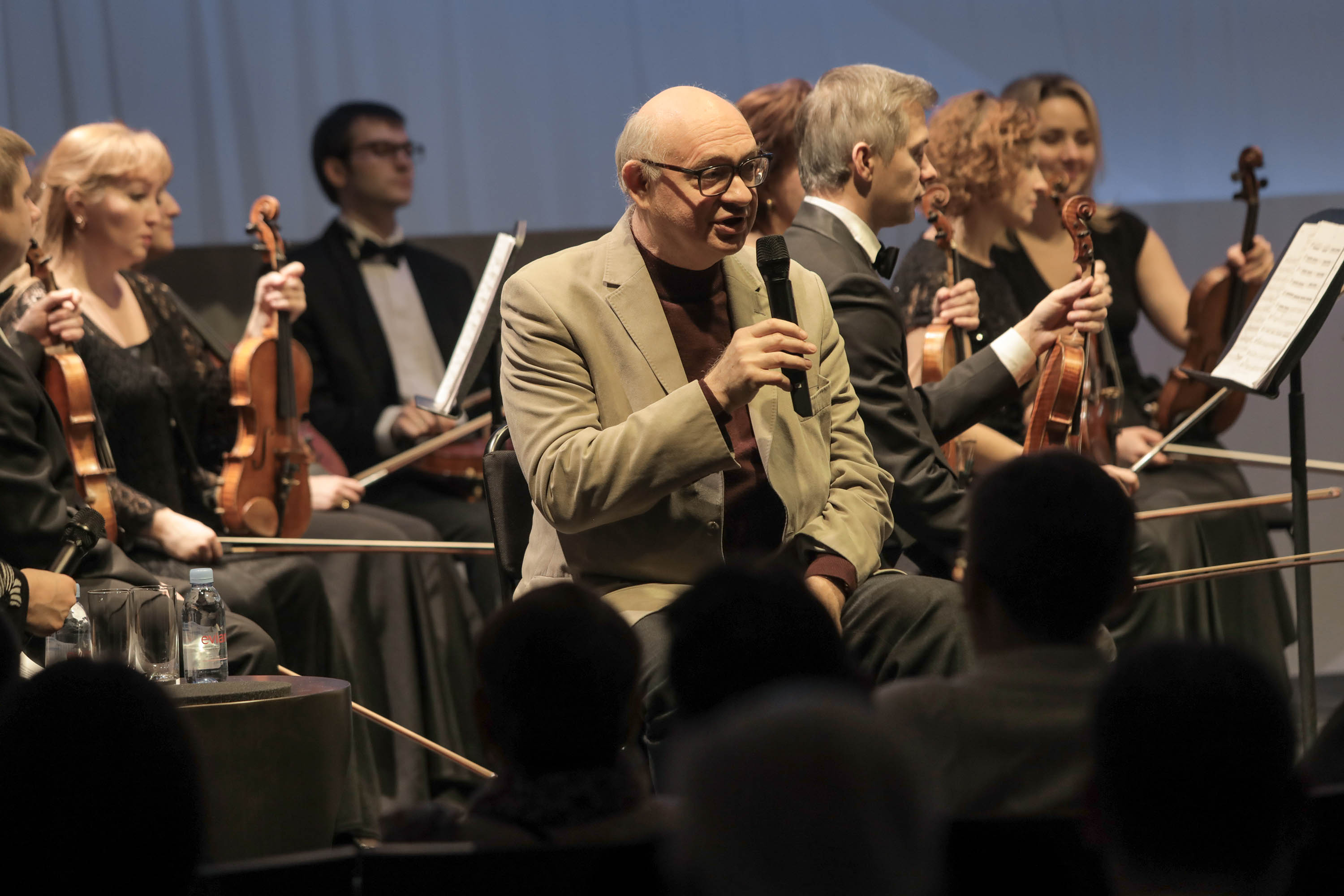 Перед зрителями в "Зарядье" выступают Оркестр Московского театра «Новая опера» имени Е.В. Колобова и скрипач Иван Почекин.